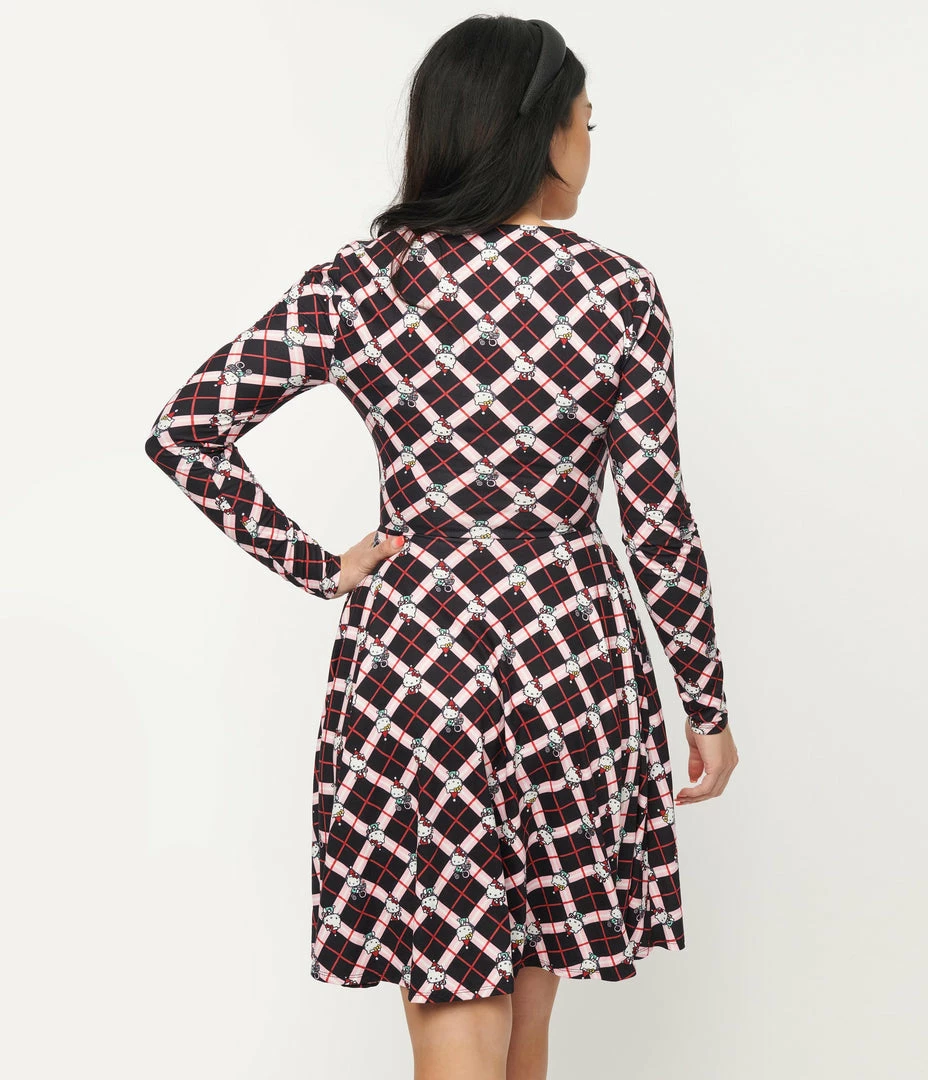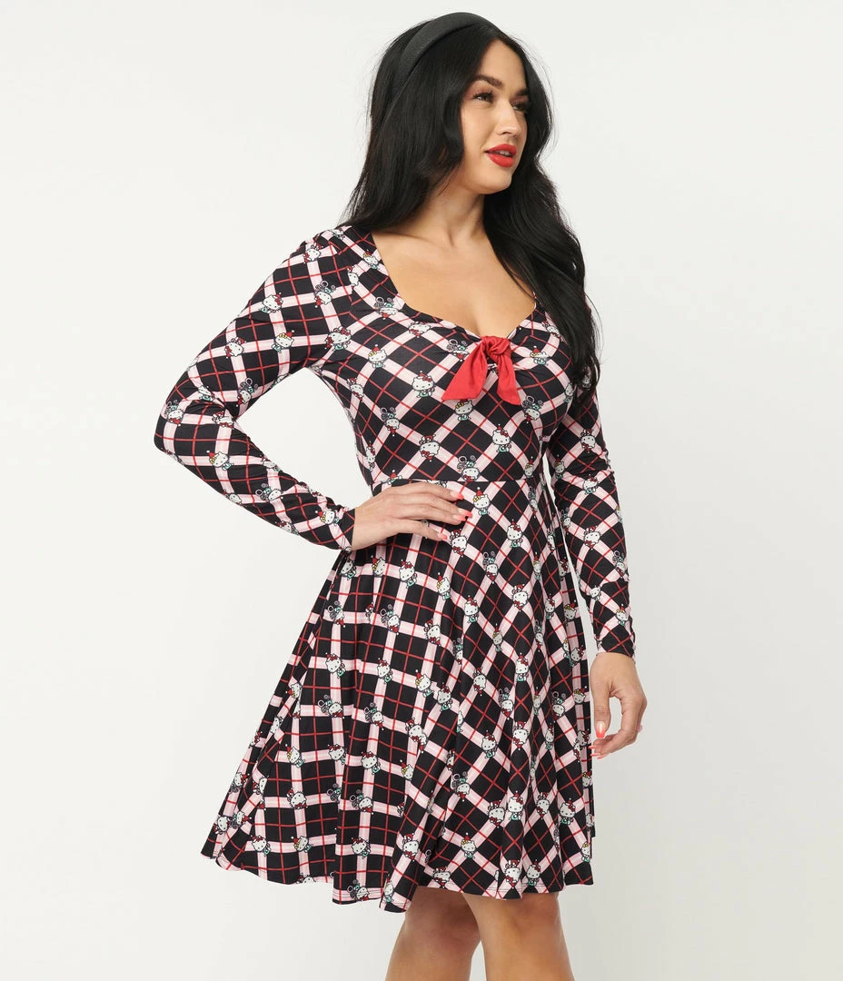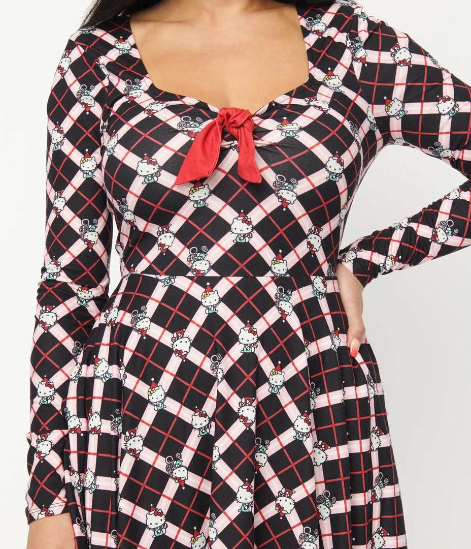 Best deal 🤩 Fan Flair Hello Kitty X Unique Vintage Holiday Kitty Plaid Hello Gorgeous Flare 👗 Dress 🔔