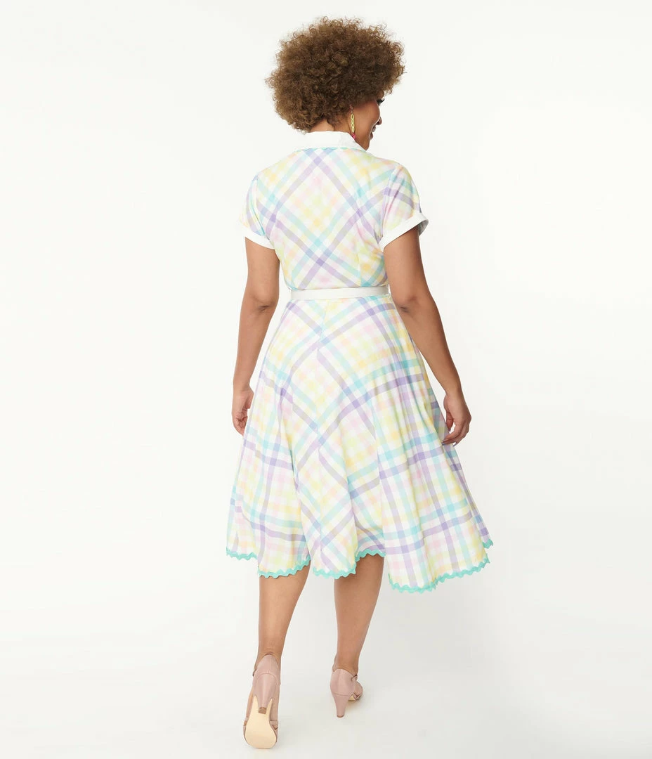 Wholesale 😉 Fan Flair Polly Pocket X Unique Vintage 1950s Pastel Rainbow Gingham Alexis Swing 👗 Dress ⌛