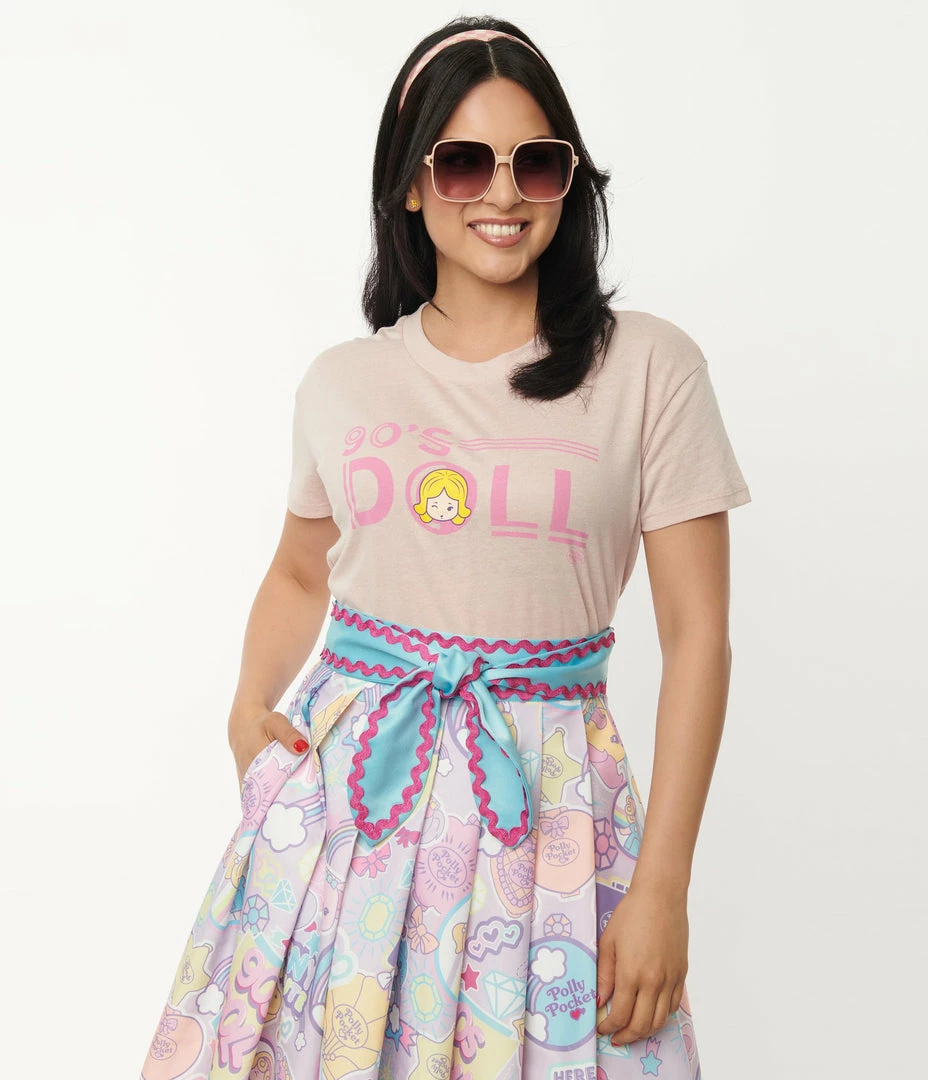New 😀 Fan Flair Polly Pocket X Unique Vintage Pink 90s Doll Crop Tee ✔️