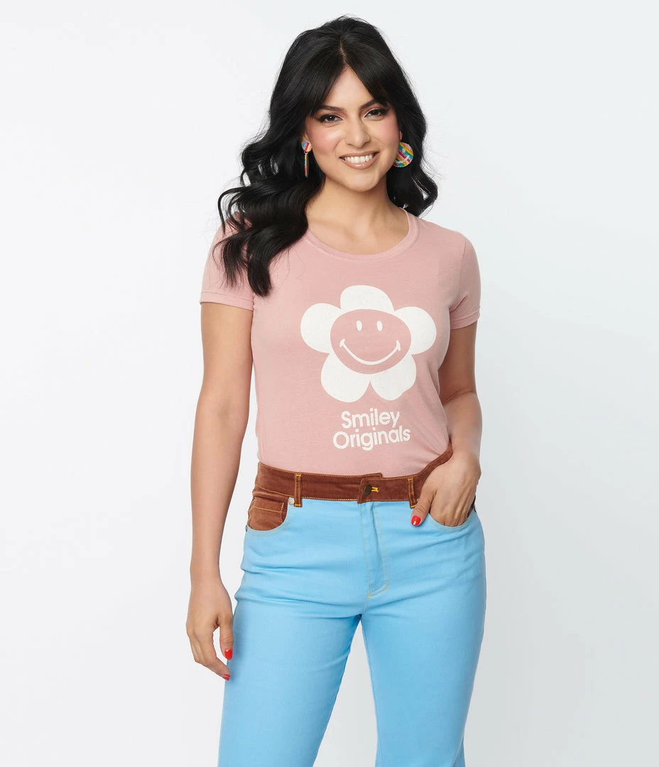 Best deal 👏 Fan Flair Smiley® X Unique Vintage Pink & Smiley® Daisy Original Unisex Graphic Tee 🎉