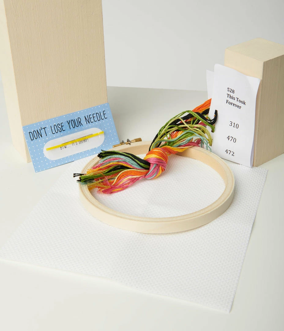 Your saucy introduction to cross stitch! Just count your stitches as you follow along the pattern of this notice that โThis Took Foreverโ. All you need is a pair of scissors and the rest is in the box!