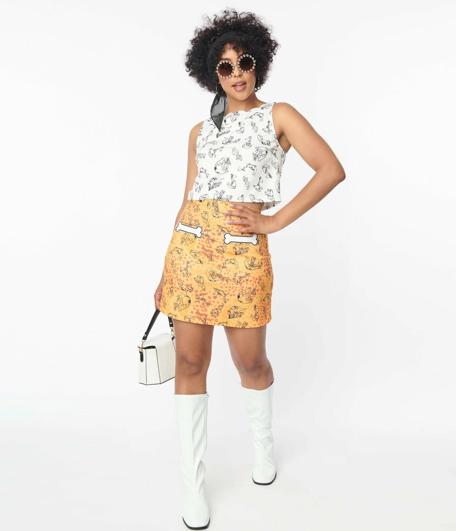 Hot Sale 🔔 Flintstones X Smak Parlour Mustard & Dino Print Mod 👗 Skirt Clothing ✔️