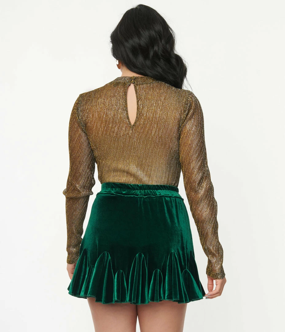 Tis the season to sparkle, dolls! A sizzling and dazzling piece for your seasonal celebrations, this sheer bodysuit glitters in silver and gold metallic threading. Outfitted with a mock turtleneck that secures with a button back keyhole, framed by slender long sleeves, and complete with a dual snap button closure for a stunning silhouette!
