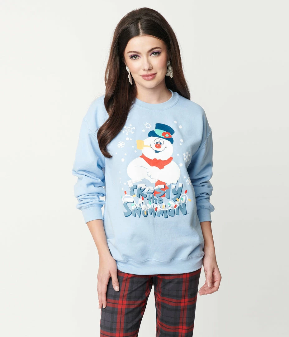 Cheap 🎁 Frosty The Snowman X Unique Vintage Light Blue Holiday Sweatshirt ⌛