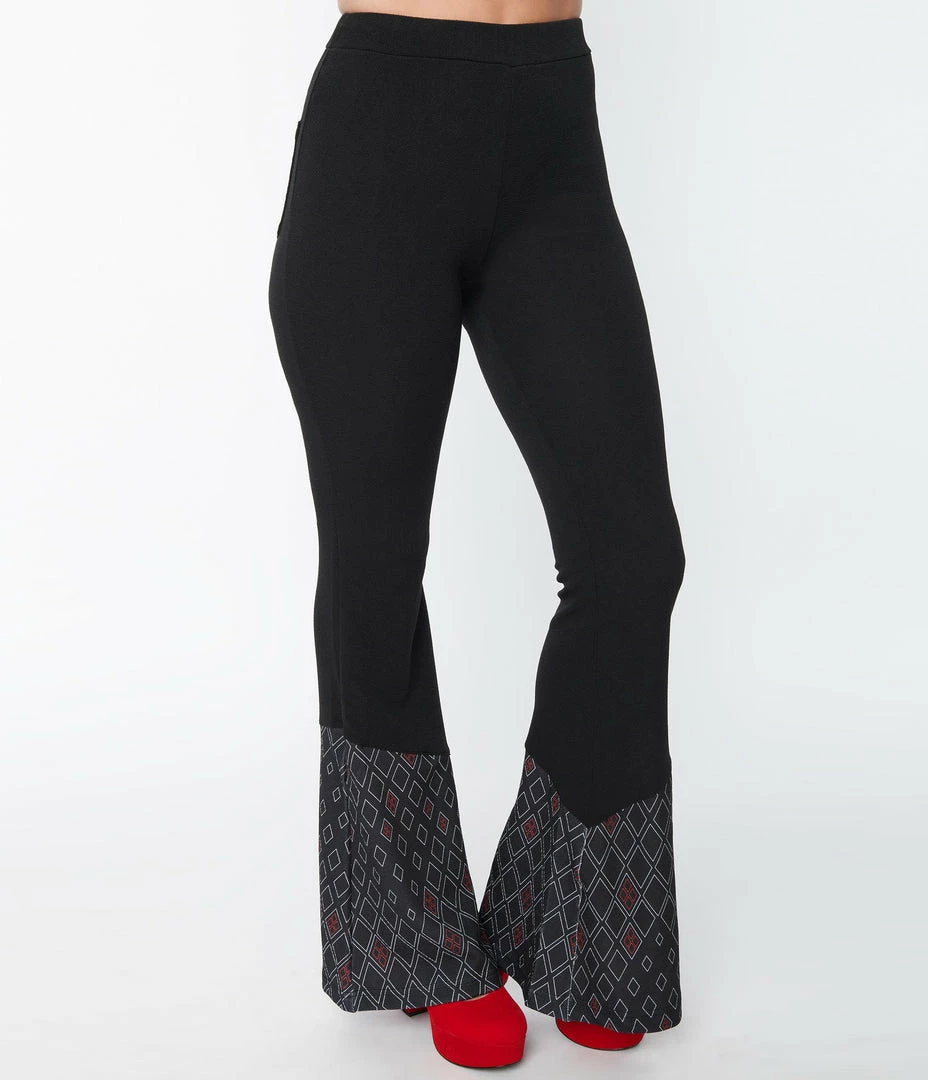 Discount ⭐ Harley Quinn X Smak Parlour Black & Red Argyle Flare Pants 🌟