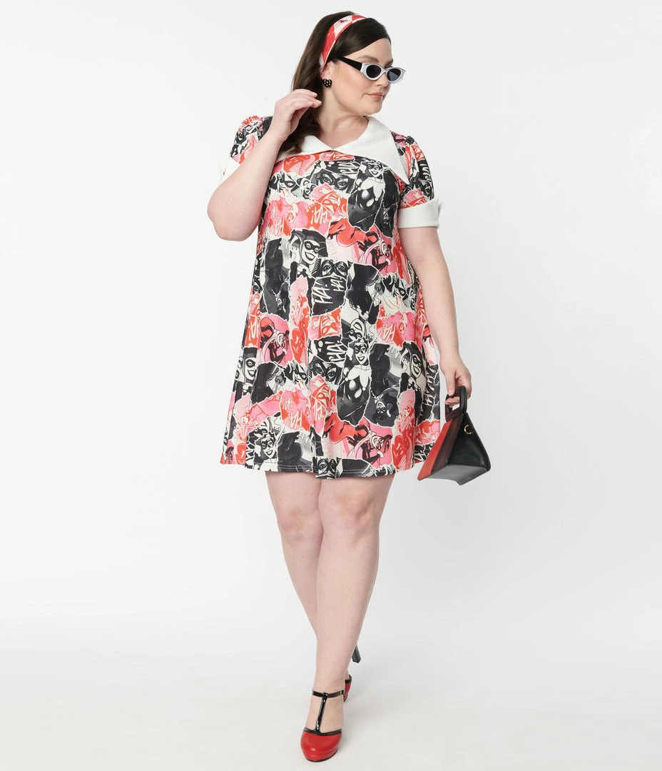 Hot Sale ๐ Harley Quinn X Smak Parlour Plus Size Black & Pink Comic Print Mini ๐ Dress โค๏ธ