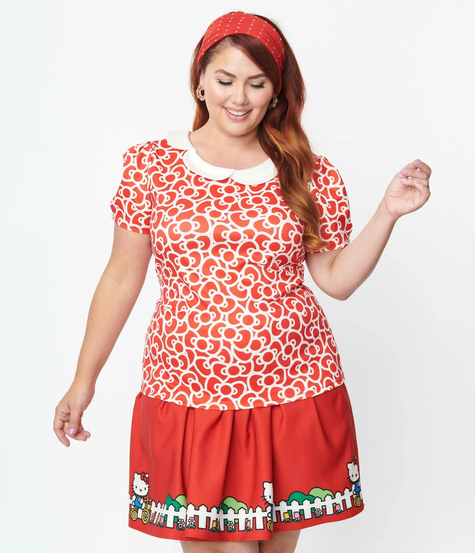 Flash Sale 👍 Hello Kitty X Smak Parlour Plus Size Red & White All Over Bows Top 🎉
