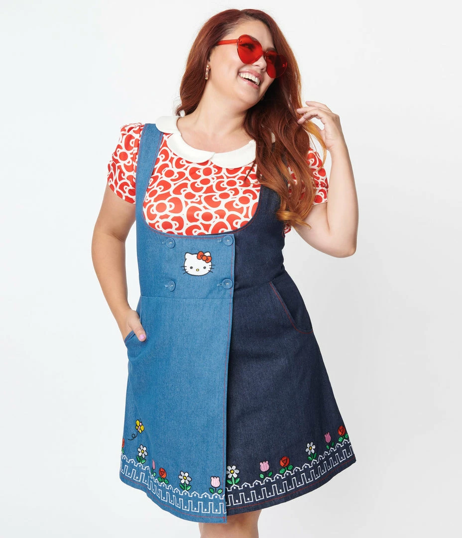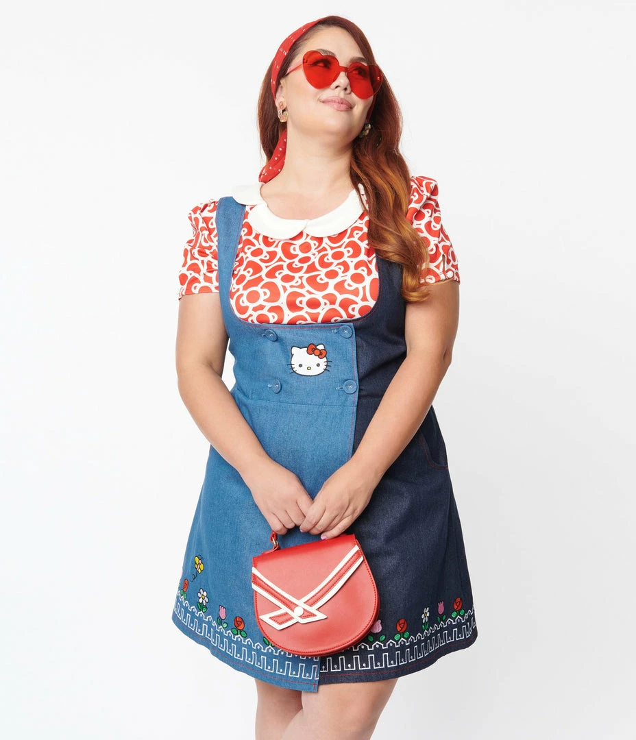 A sweet plus size separate in collaboration with Hello Kitty, this charming piece is crafted in a fantastic knit blend dancing with an all over print of Hello Kitty’s bow in red and white. The modest scoop neckline is highlighted in an off white contrast scalloped collar and complete with sweet short sleeves that are embellished with a button keyhole cuff!