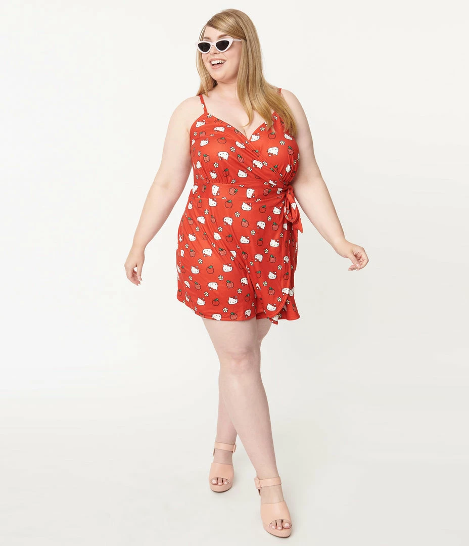 Cheap ๐ Hello Kitty X Unique Vintage Plus Size Red Apple Lottie Wrap Romper โ
