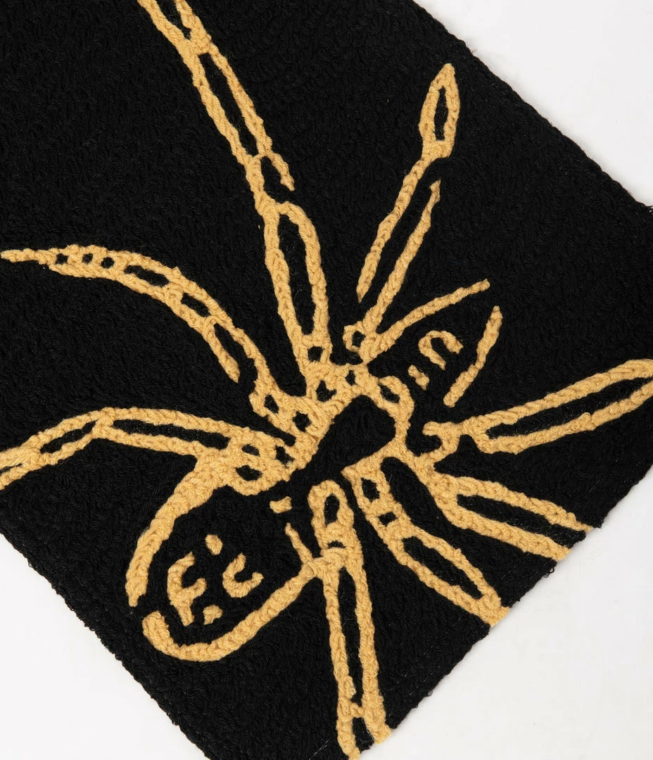 Creepy crawlies, dolls! Dress your door in spooky style with this black and gold spider doormat. Crafted using double twist twisted hook construction for durability!