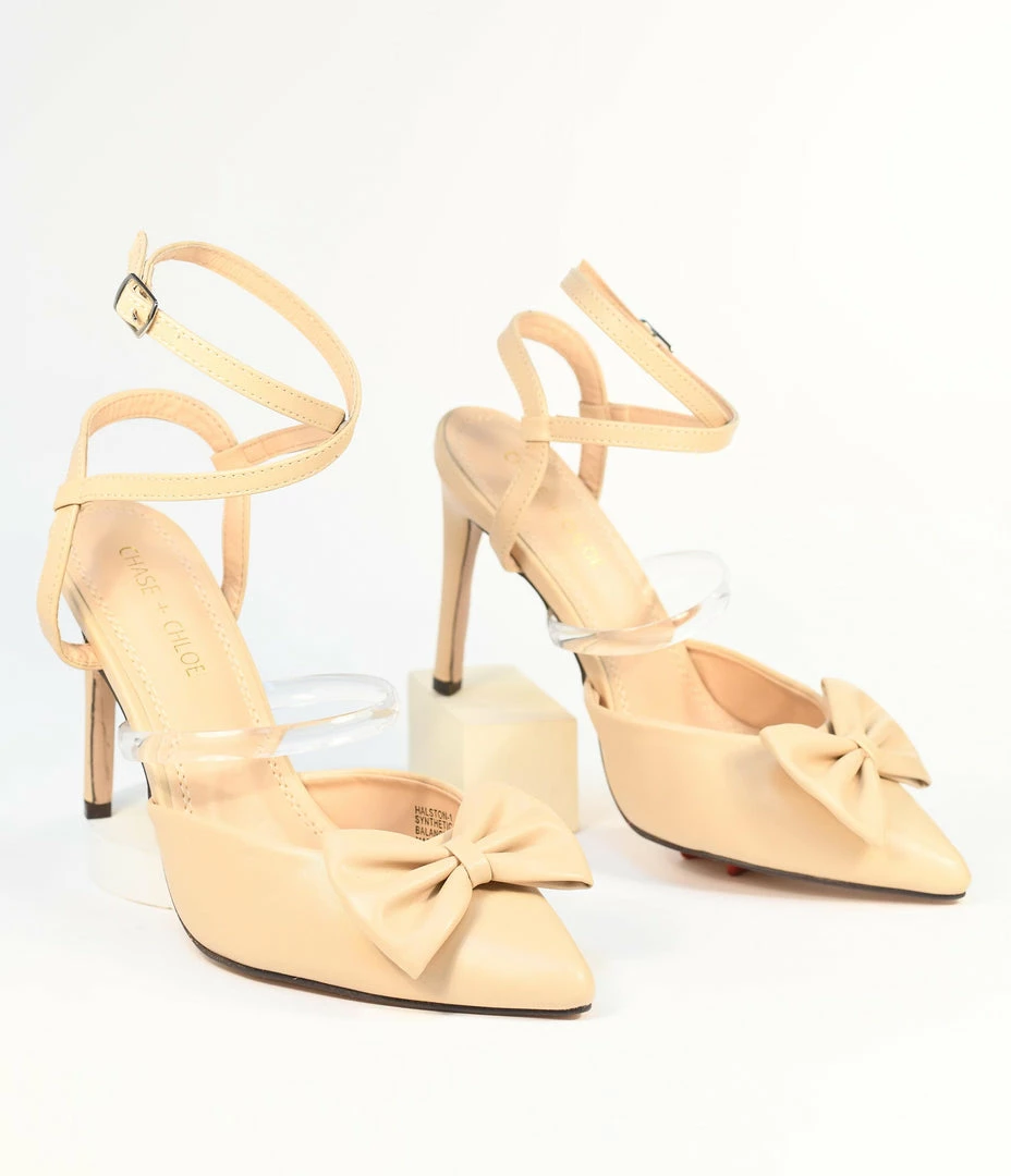 Flash Sale โ In Touch Footwear Beige Bow Strappy Ankle ๐ Heels Shoes ๐