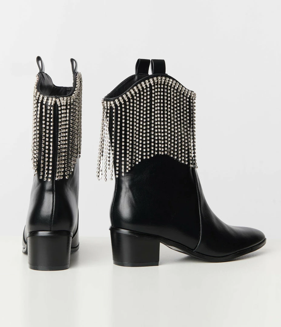 Coupon ⭐ In Touch Footwear Black Rhinestone Tassel Cowboy 🥾 Boots 🎁