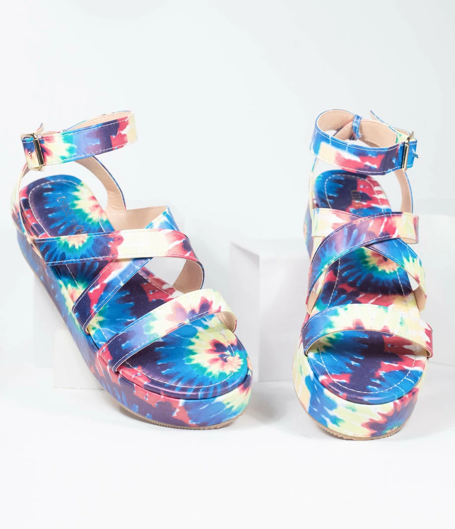 Wholesale 👍 In Touch Footwear Rainbow Tie Dye Leatherette Platform 🩴 Sandals 👏