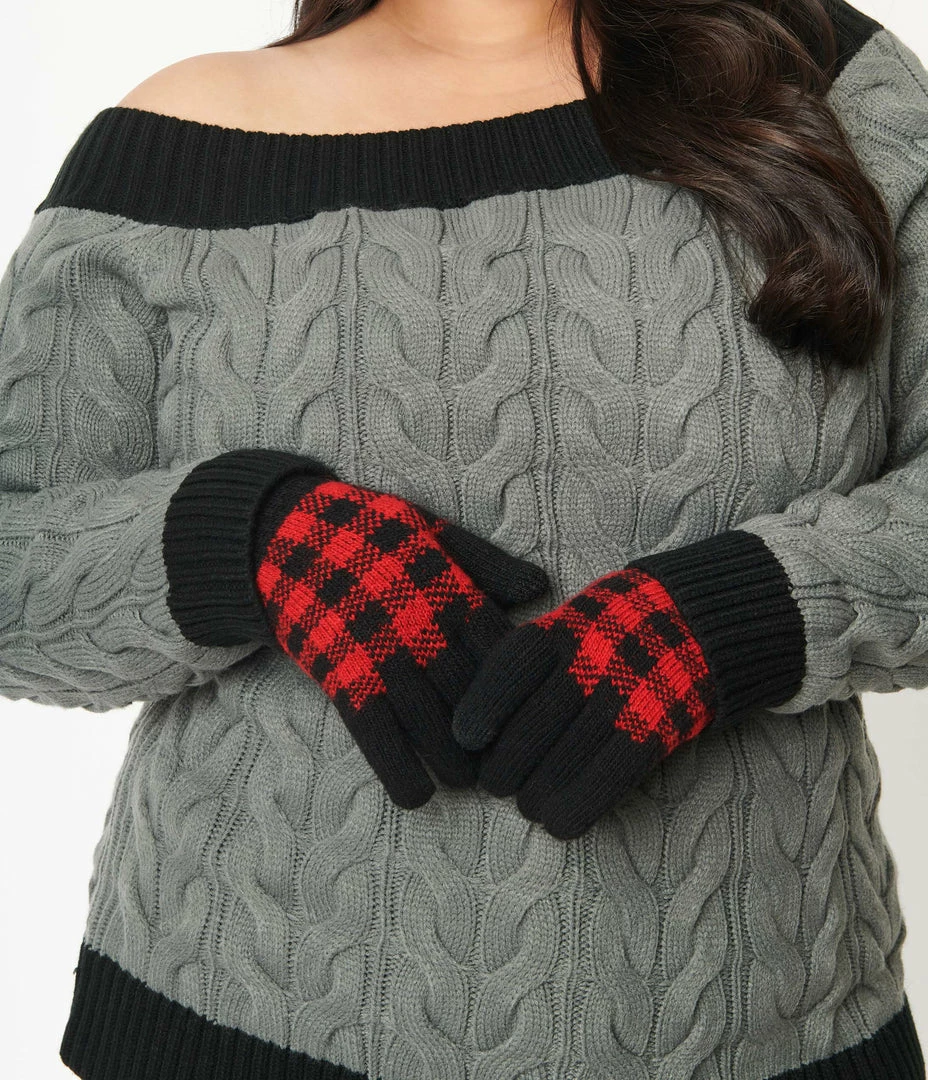 Top 10 ๐ฅฐ Joia Accessories Red & Black Buffalo Plaid Knit Gloves ๐