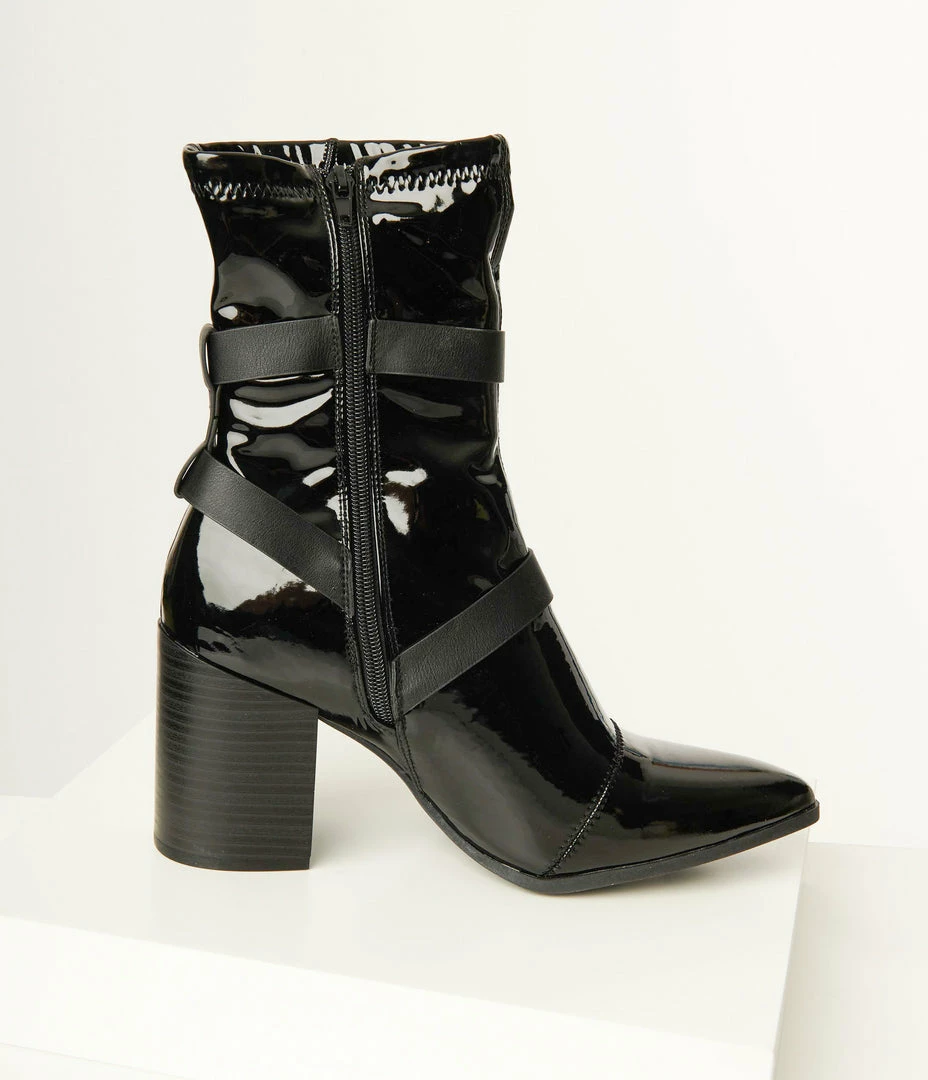Flash Sale ๐ Joia Black Patent Leatherette Strappy Ankle ๐ฅพ Boots ๐งจ