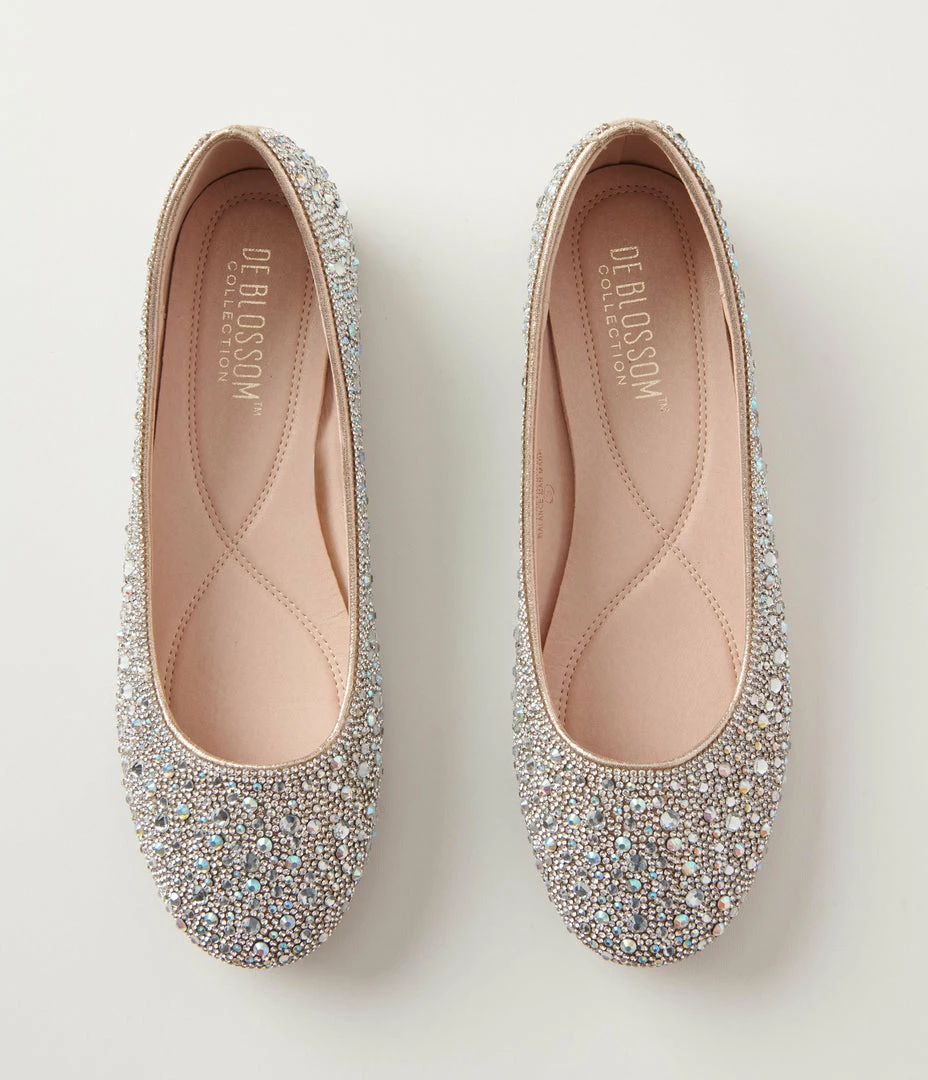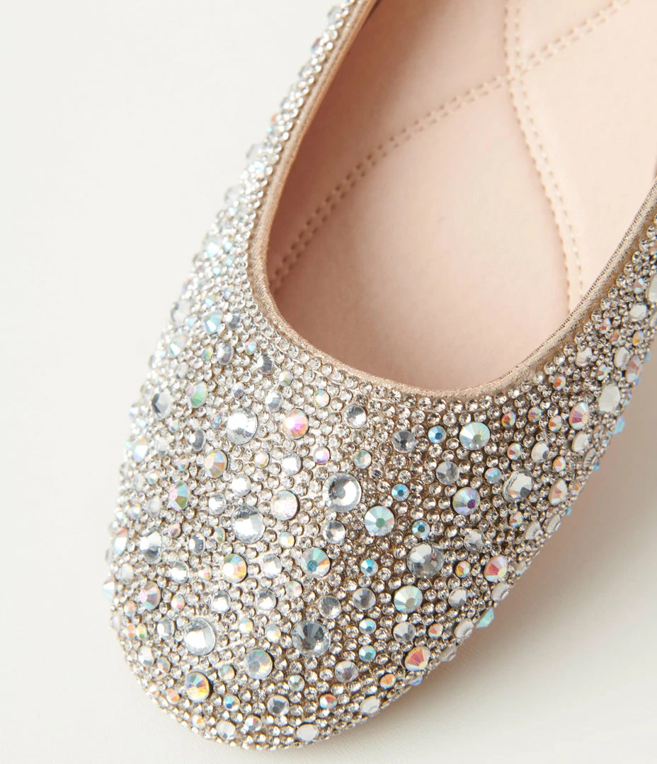 Promo 😀 Joia Silver Crystal Rhinestone Ballet Flats ⌛