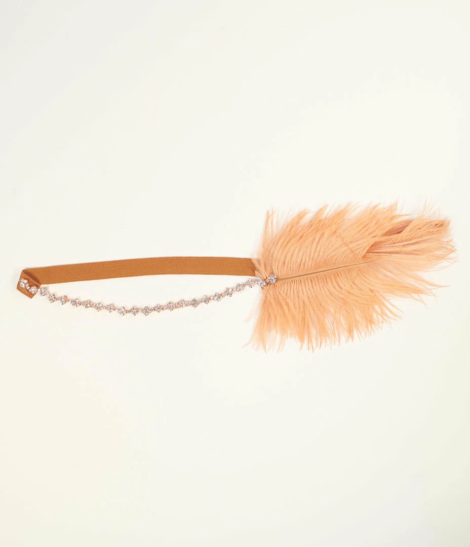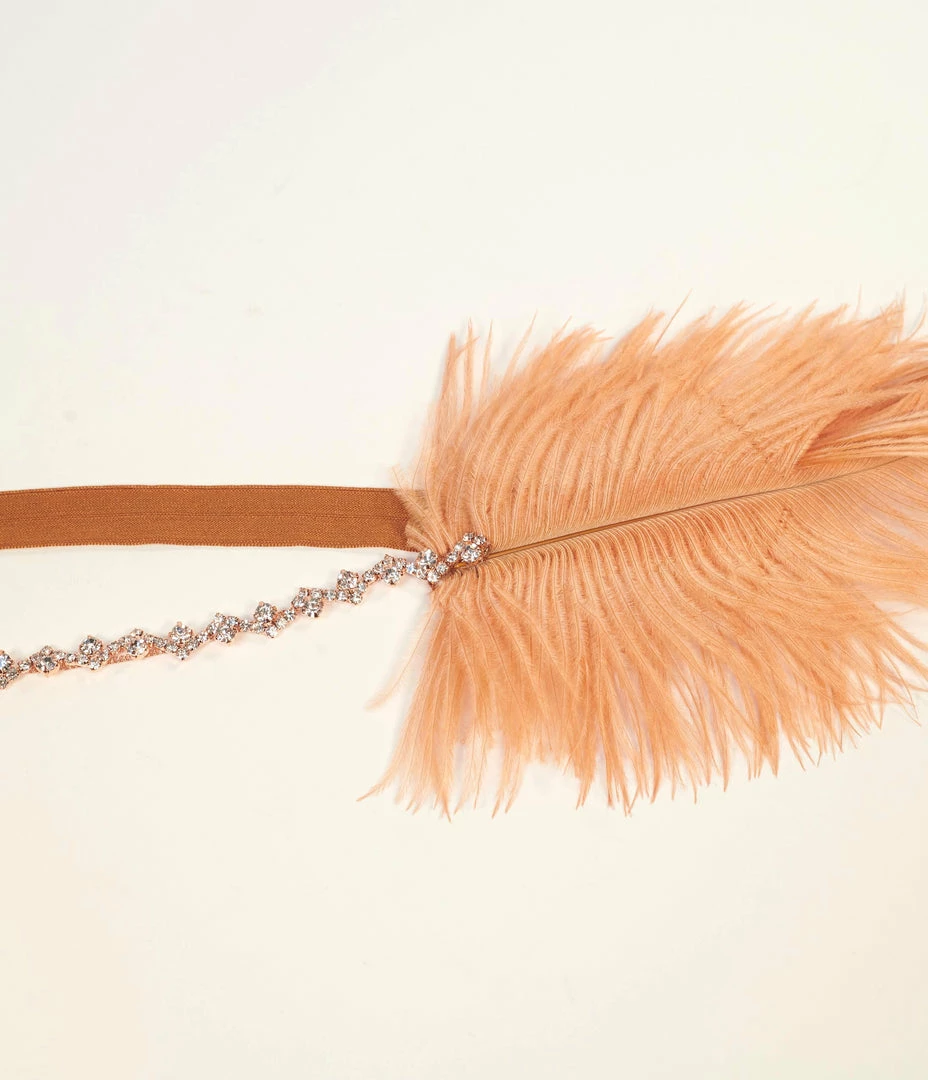 Promo ๐ฏ Jolie Flapper Accessories Copper Orange Feather & Rhinestone Gigi Headband ๐