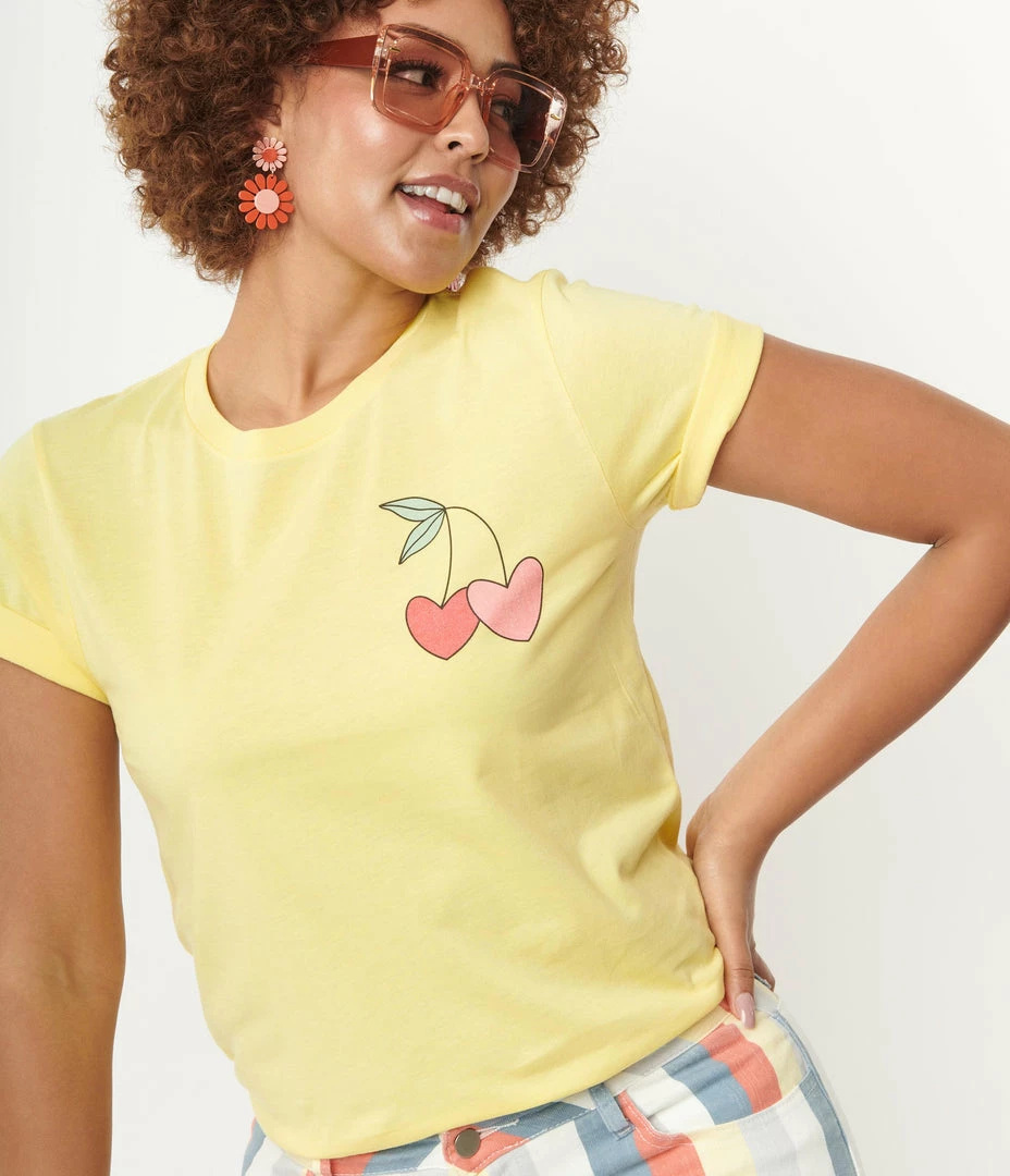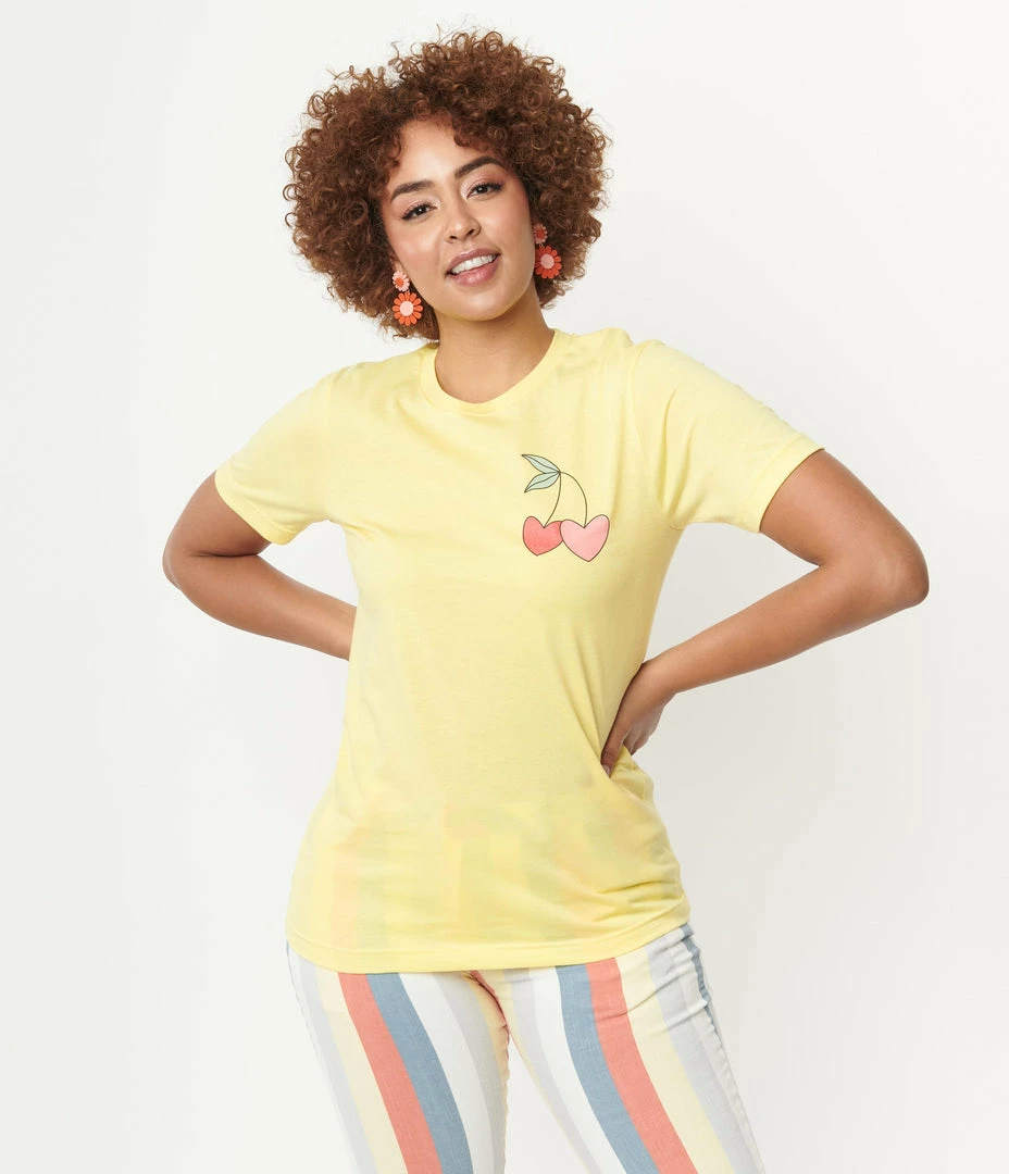 Coupon 👍 LA Show Room (Olive And Ivory) Sale Yellow & Cherry Hearts Unisex Graphic Tee 🔔