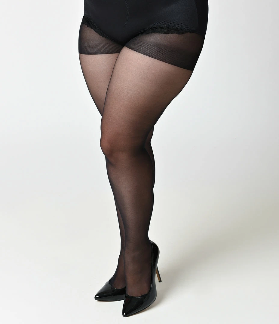 A striking staple in every woman’s wardrobe! These sheer plus size spandex pantyhose feature a black contrast backseam and timeless fit. Classically fabulous!
