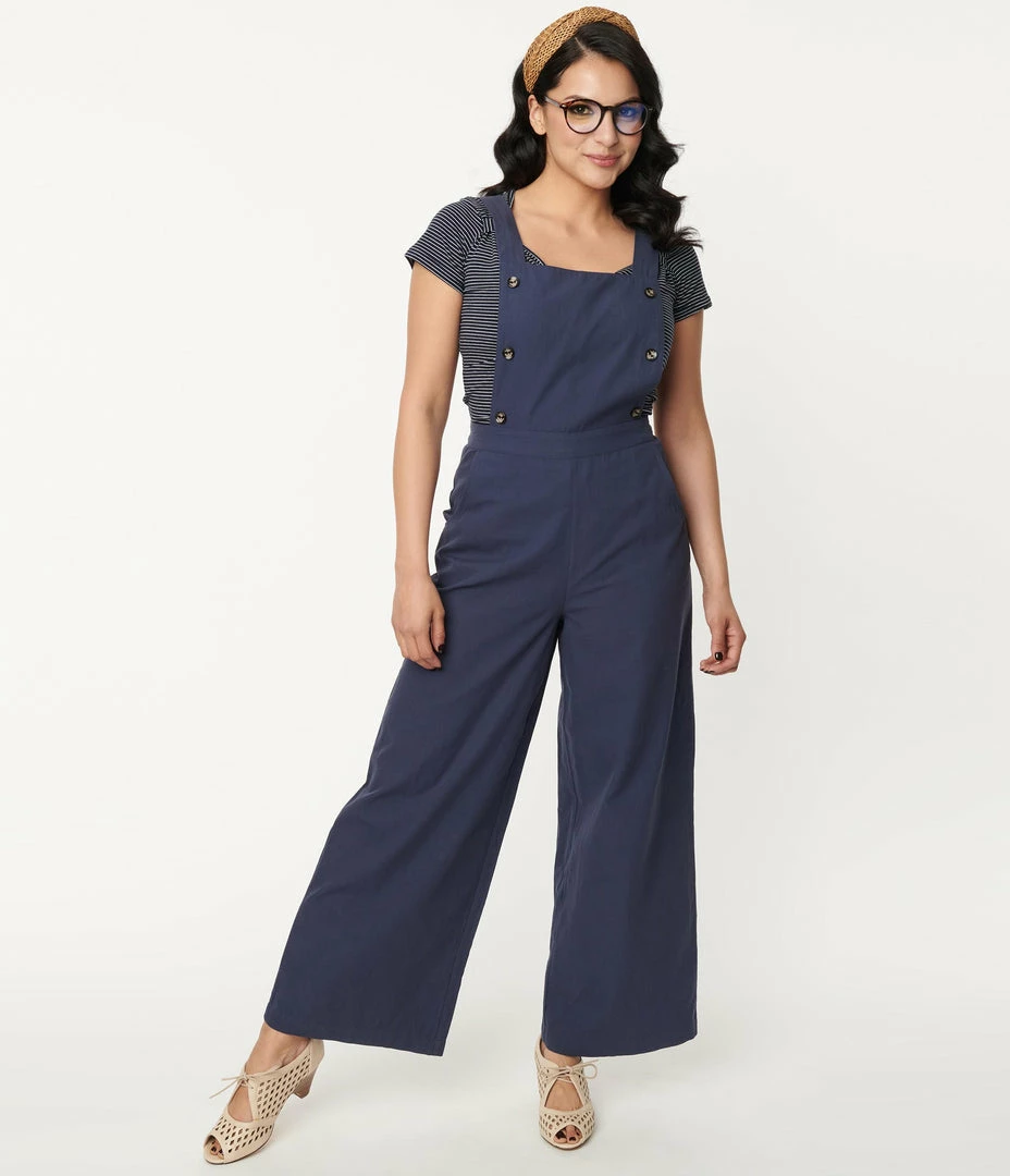Brand new โ Lifestyle Group (UK) Ltd Navy Blue Wide Leg Overalls Sale ๐ฅ