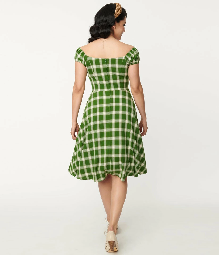 Cheapest 🌟 Lifestyle Group (UK) Ltd Sale 1950s Green & White Plaid Swing 👗 Dress 😀