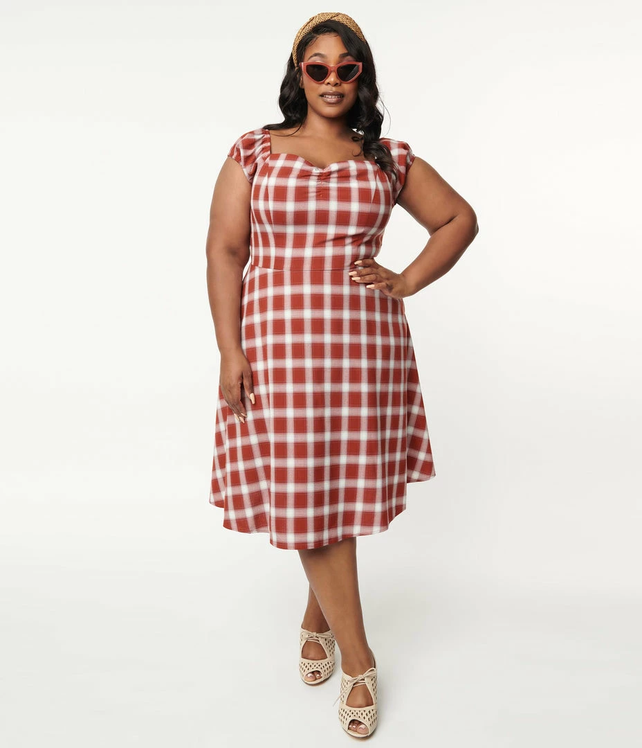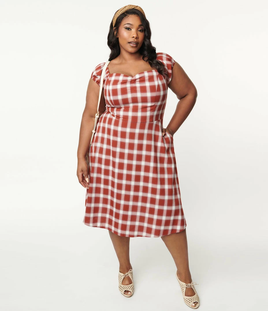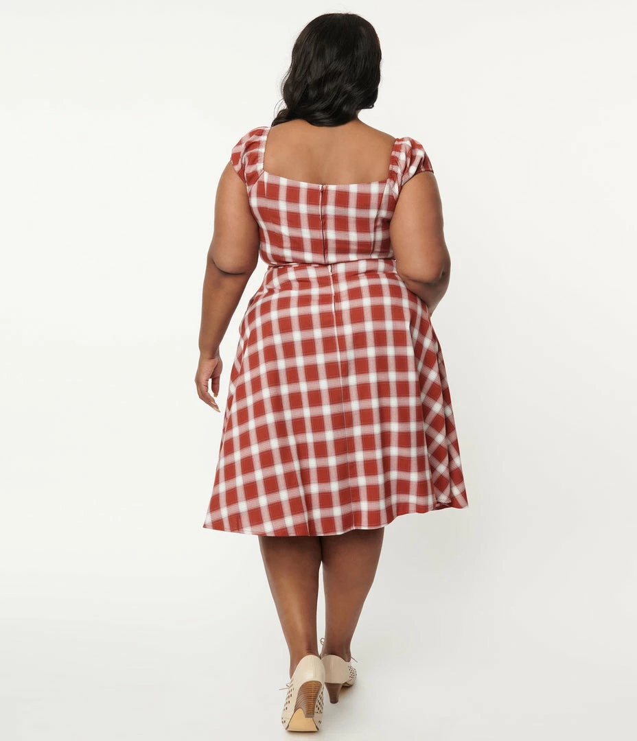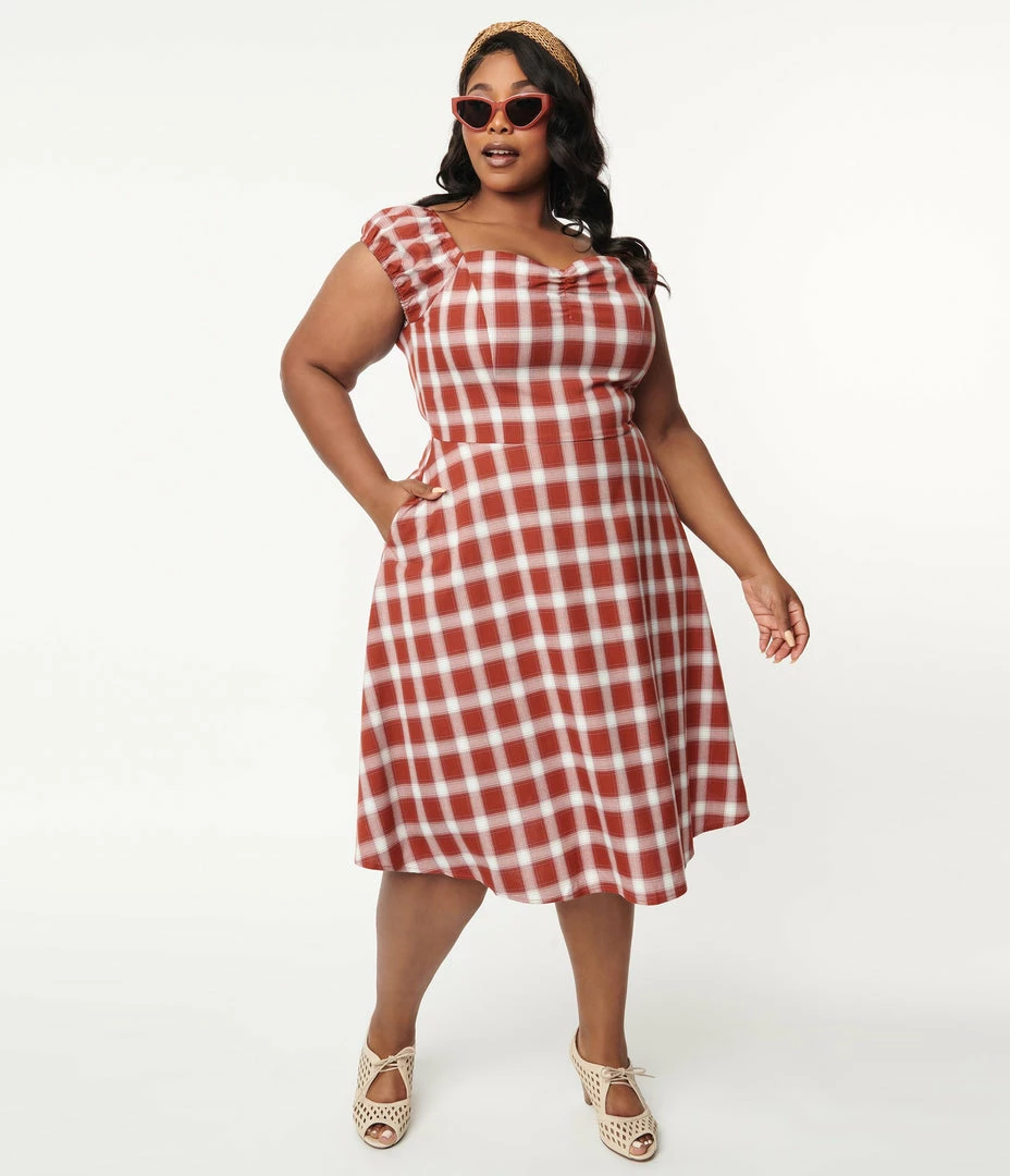 Cheap 😍 Lifestyle Group (UK) Ltd Sale Plus Size Burgundy & White Plaid Swing 👗 Dress 👏