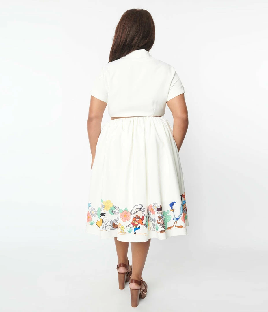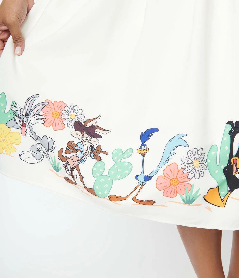 Coupon โญ Looney Tunes X Unique Vintage Plus Size White & Character Border Print Swing ๐ Dress ๐ฏ