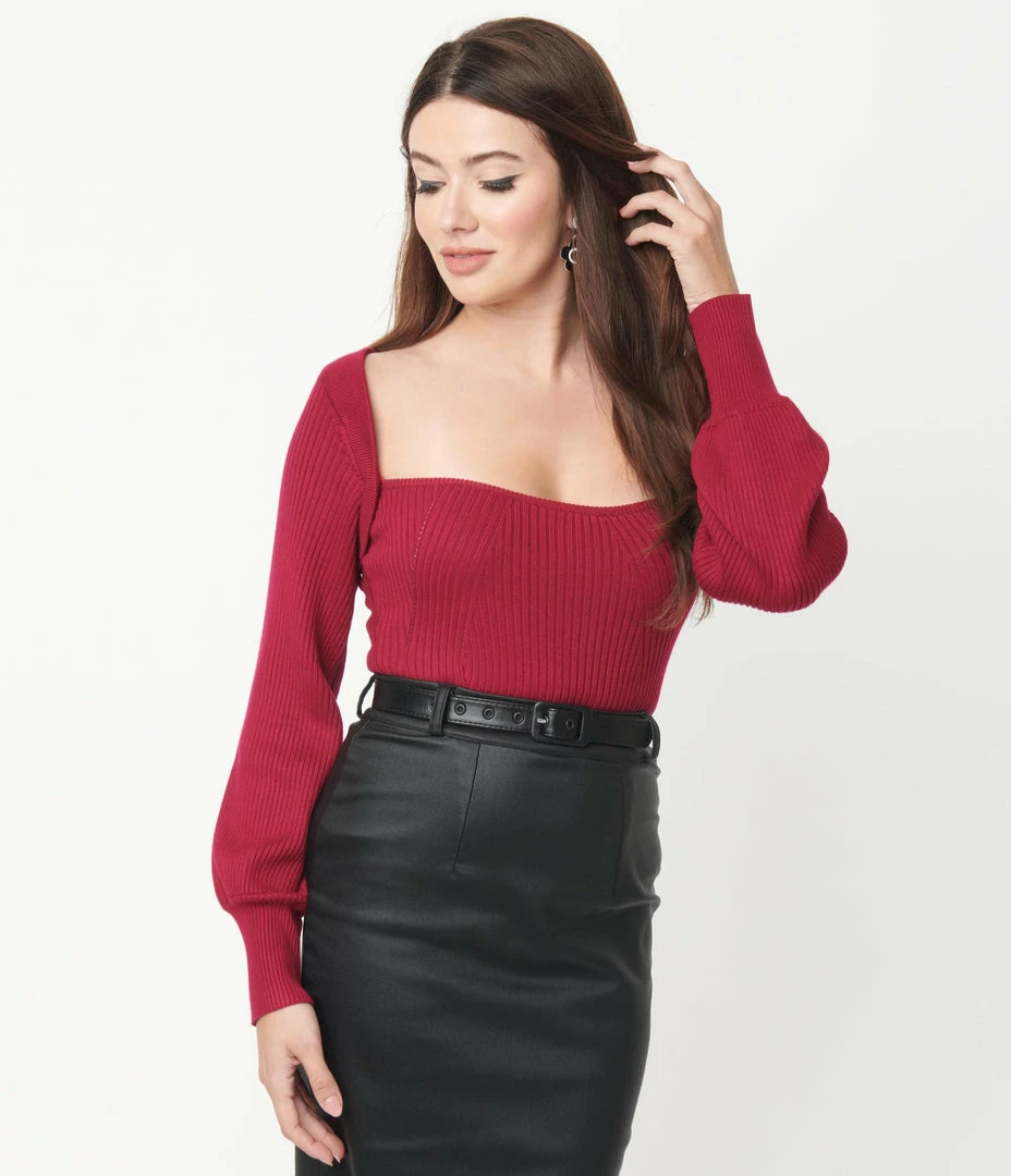Feeling berry good today! This charming berry pink sweater is crafted in a soft rib knit fabric, and boasts a sultry open back design. The straight neckline wraps around to the back, while the long sleeves are attached under the arms and are secured with attached self ties in the back!