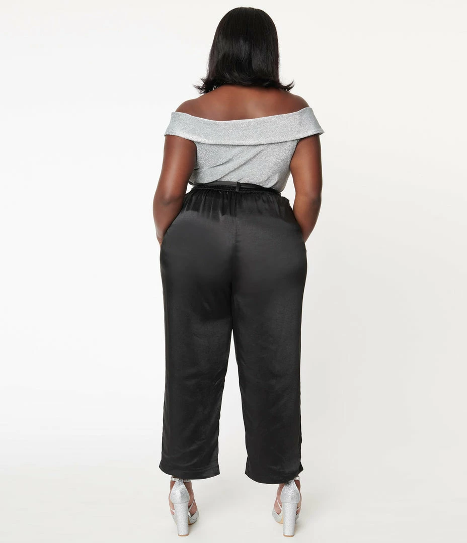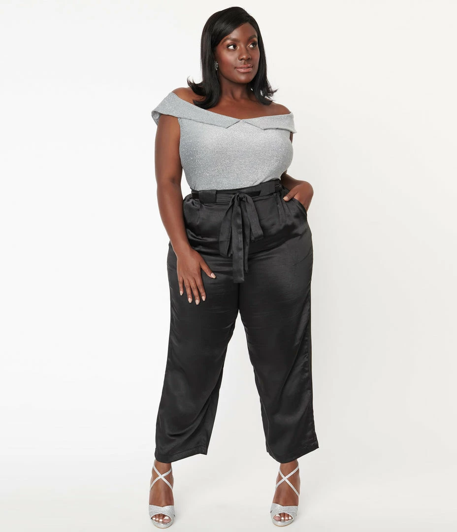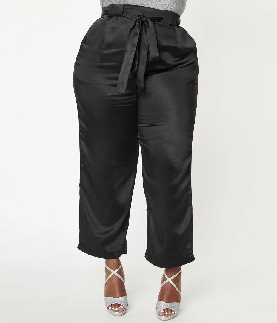 Wholesale 🤩 LUSH Sale Plus Size Black Satin Wide Leg Pants 😉