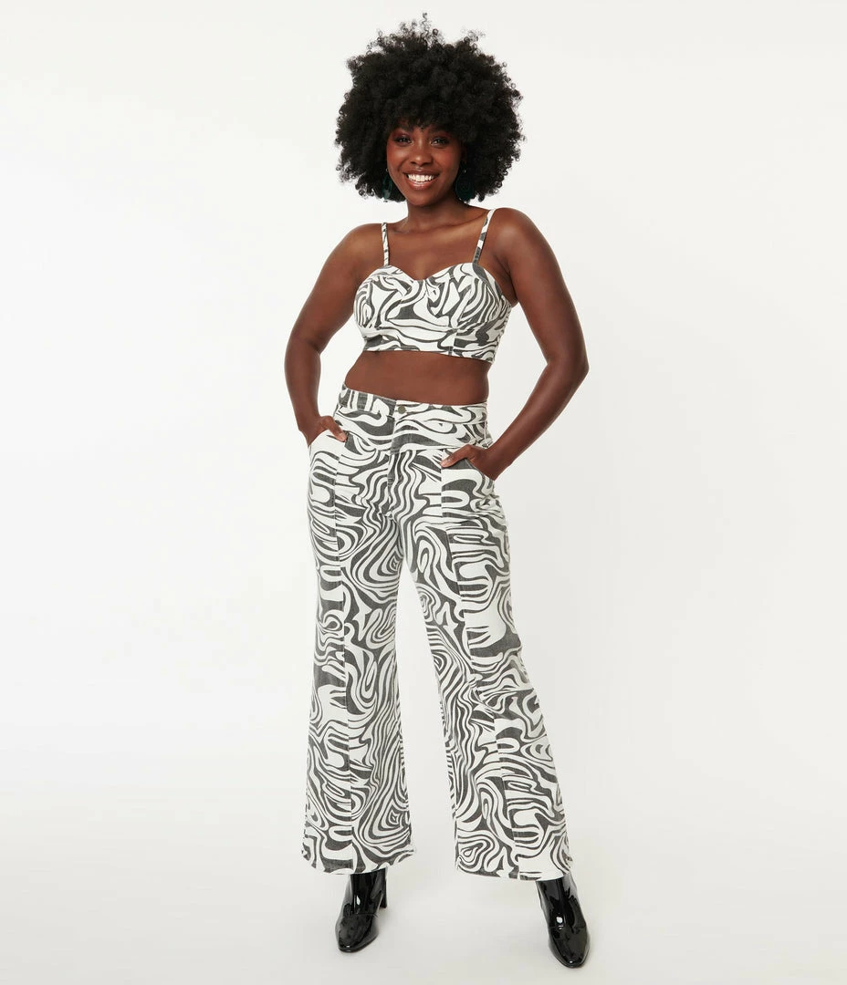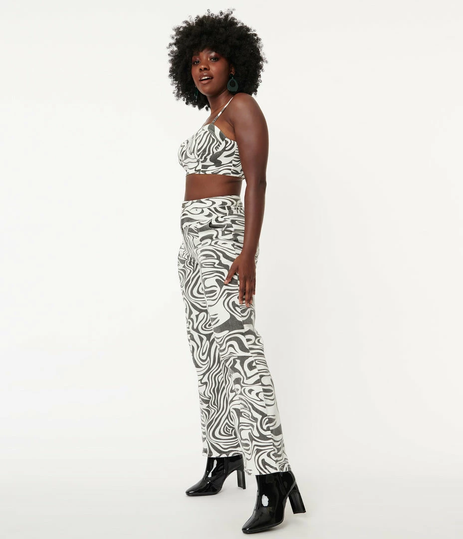 Wholesale ๐งจ LuxyUSA Black & White Swirl Print Wide Leg Pants ๐ฅ