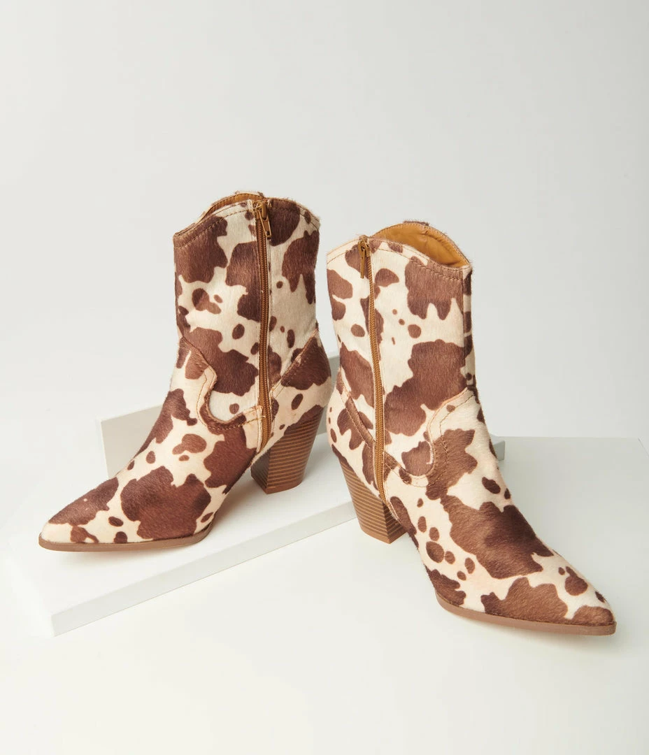 Best reviews of โ๏ธ Mata Group Tan & Cream Cow Print Calf Hair Boot ๐