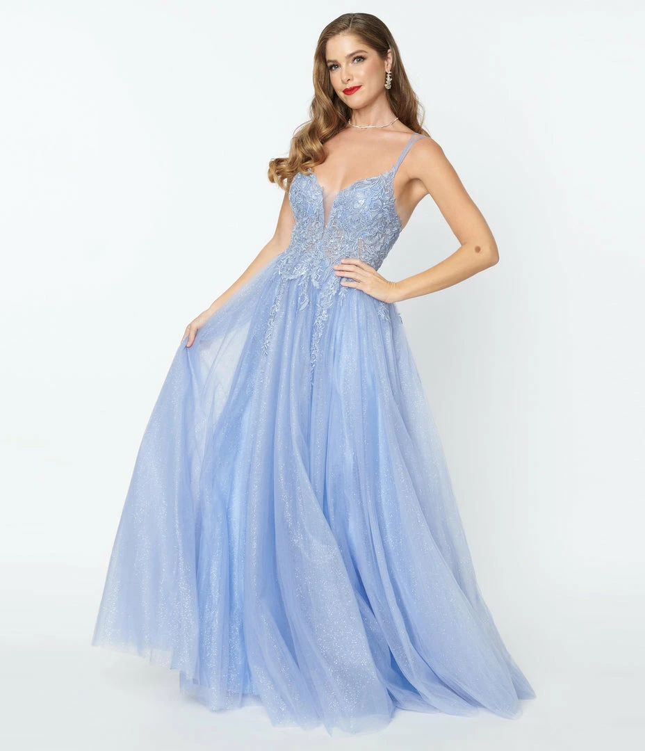 Wholesale 💯 May Queen Inc. Bridesmaid 👗 Dresses Light Blue Floral Chiffon Ball Gown 🌟
