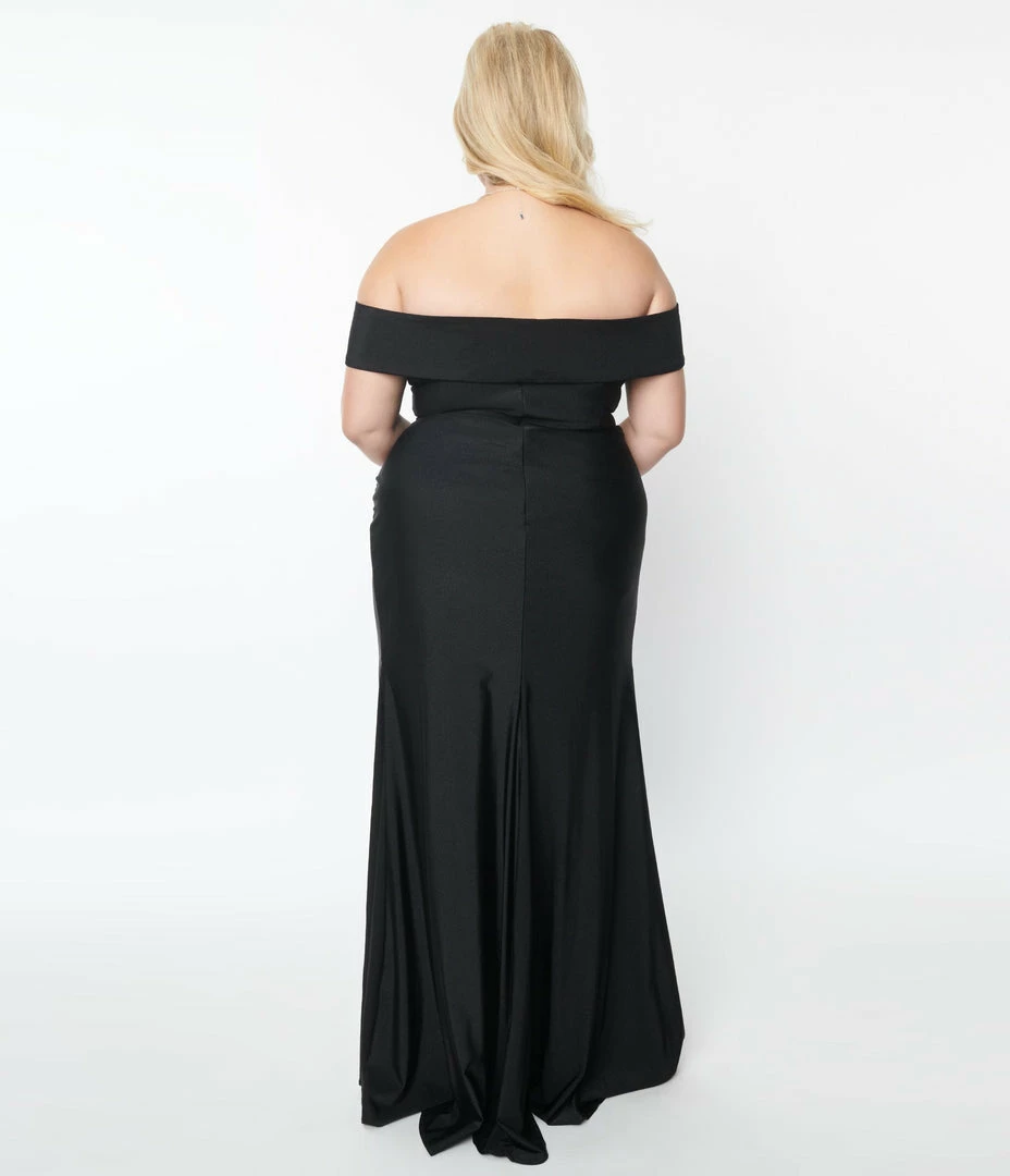 Hot Sale 🥰 May Queen Inc. Plus Size Black Off The Shoulder Full Length 👗 Dress ⭐