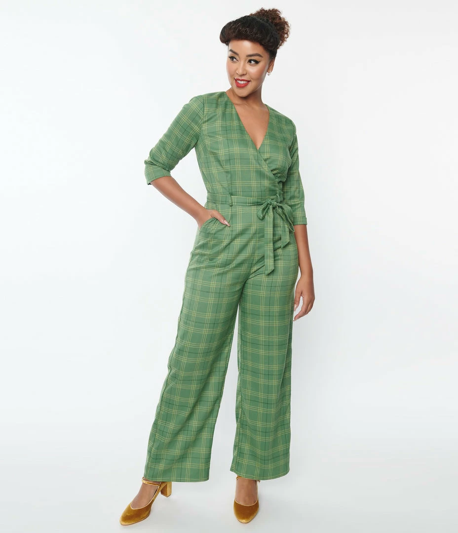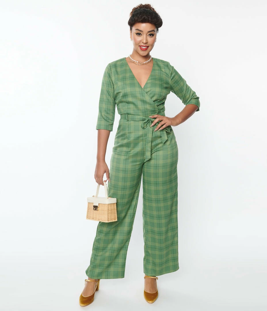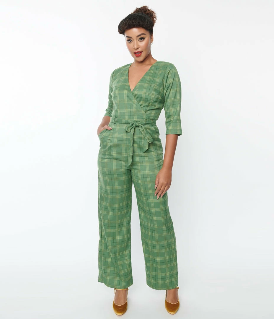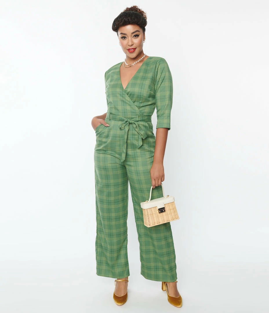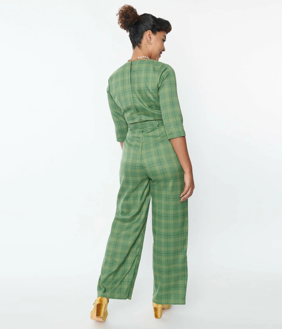 Brand new ๐ New Arrivals! Collectif Green Leaf Plaid Florina Jumpsuit ๐งจ