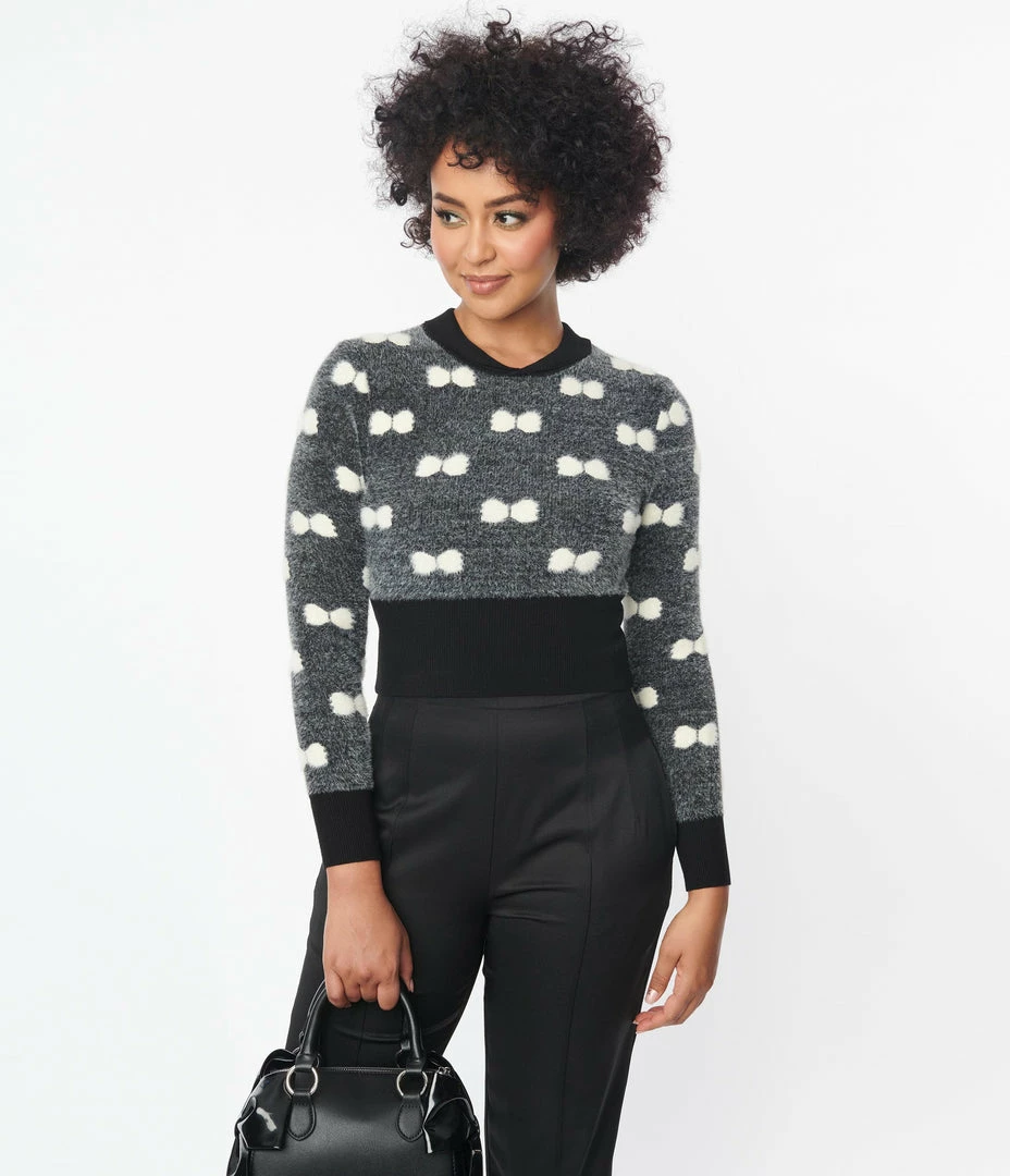 Flash Sale ❤️ New Arrivals! Unique Vintage Black & Ivory Bow Fuzzy Sweater ⌛