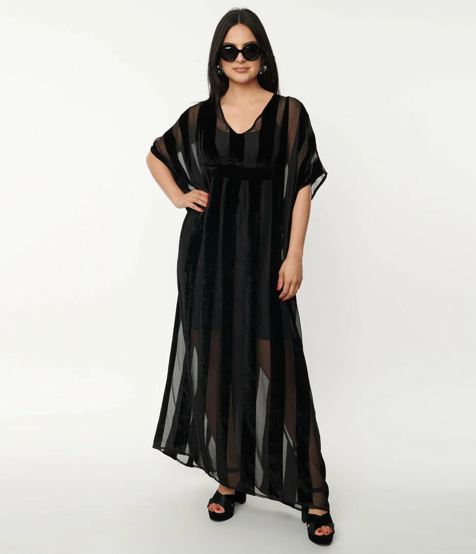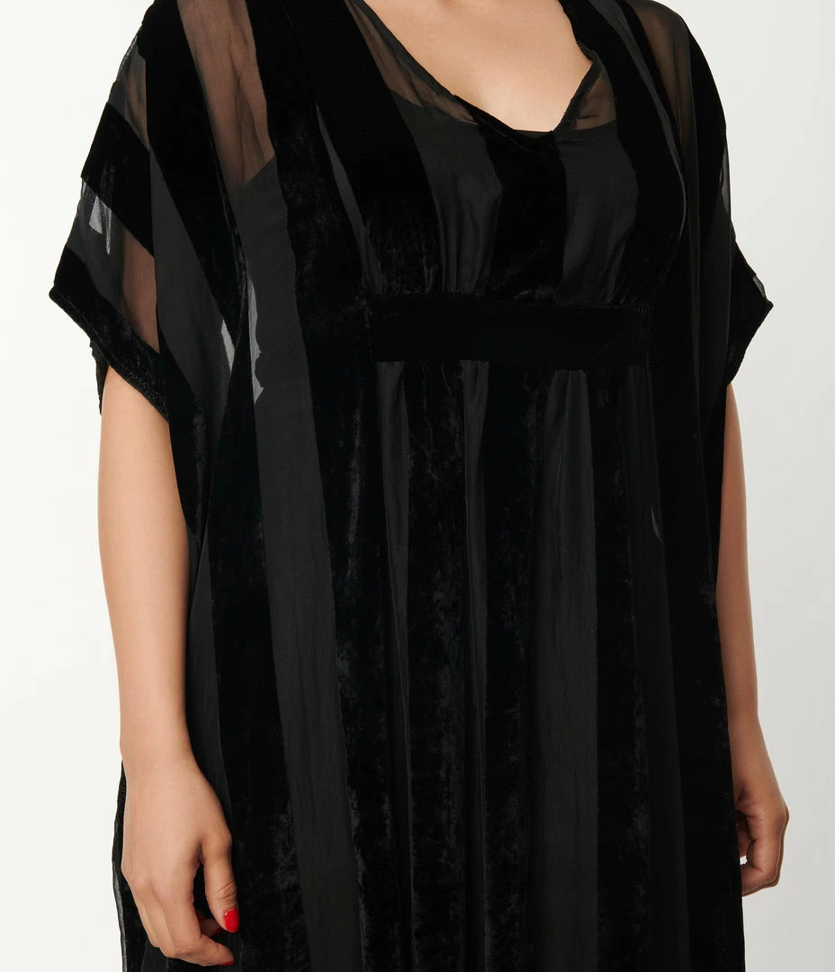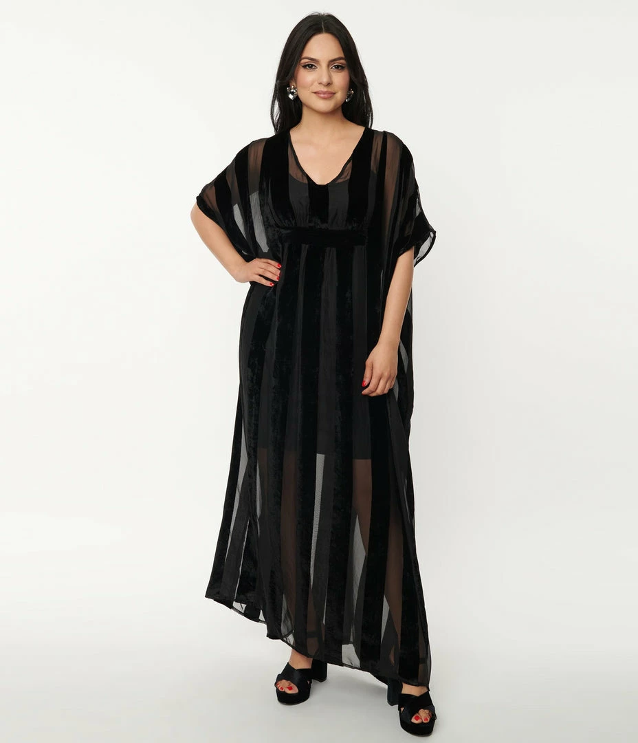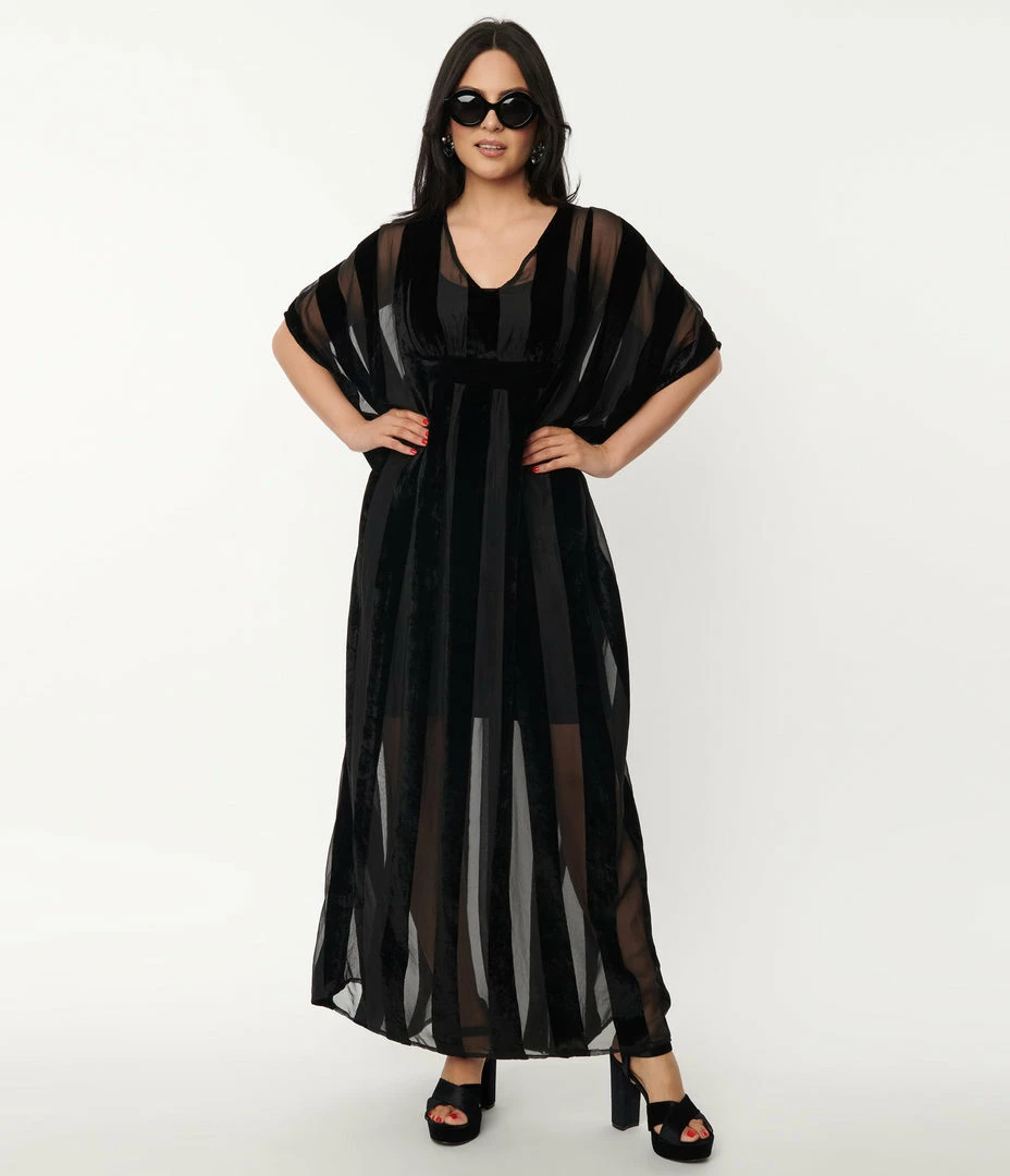 Cheapest 🥰 New Arrivals! Unique Vintage Black Stripe Devore Velvet Burton Caftan 👗 Dress 👏