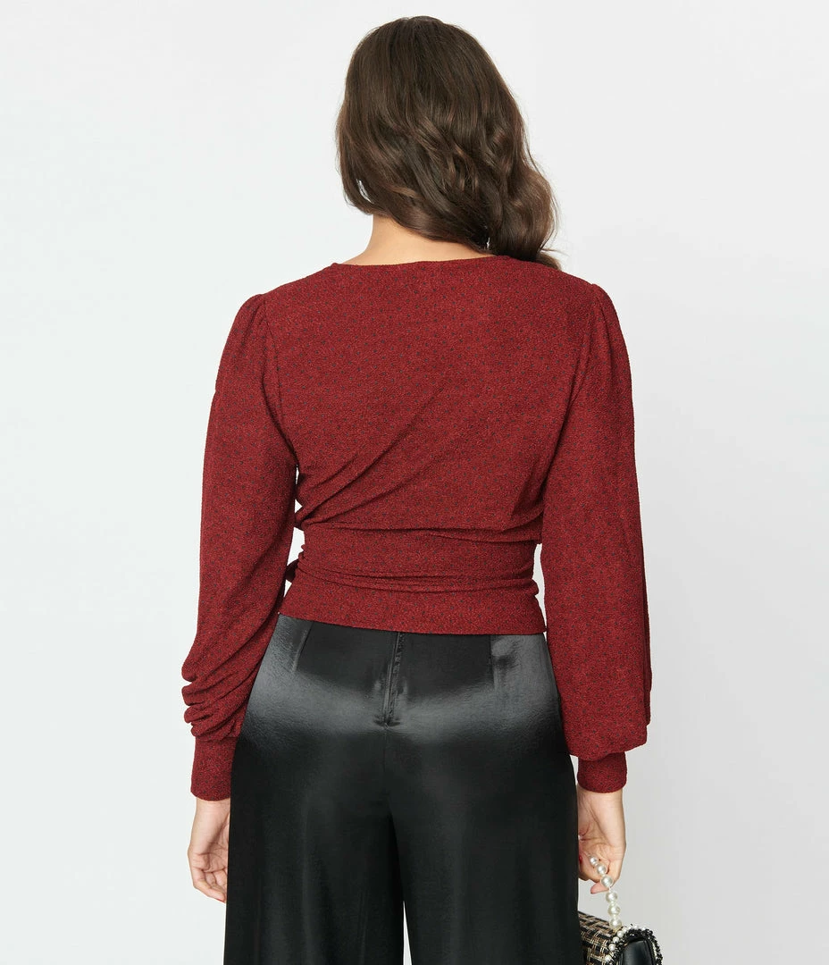 Promo 🔔 New Arrivals! Unique Vintage Burgundy & Black Dot Carmen Faux Wrap Sweater ✨