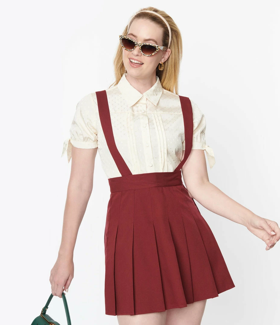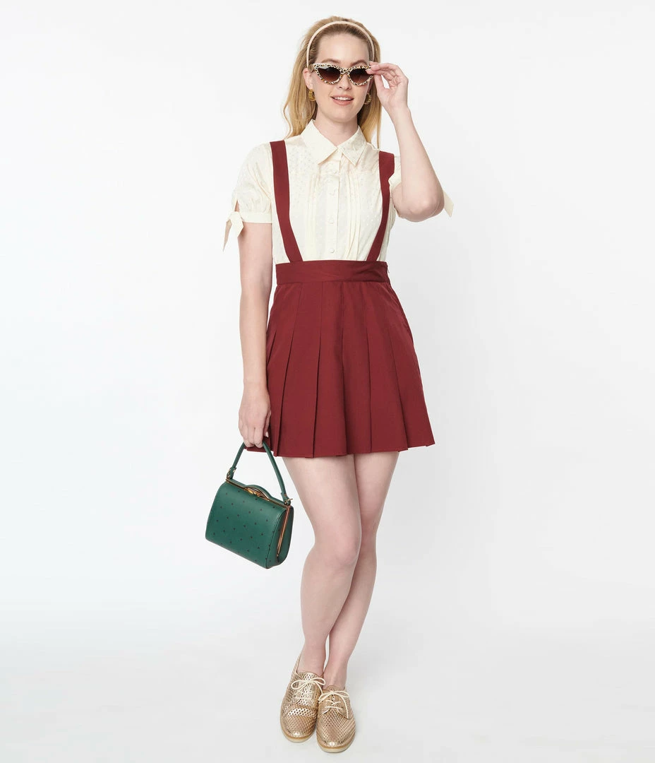 Discount 🎉 New Arrivals! Unique Vintage Burgundy Pleated Suspender 👗 Skirt ❤️