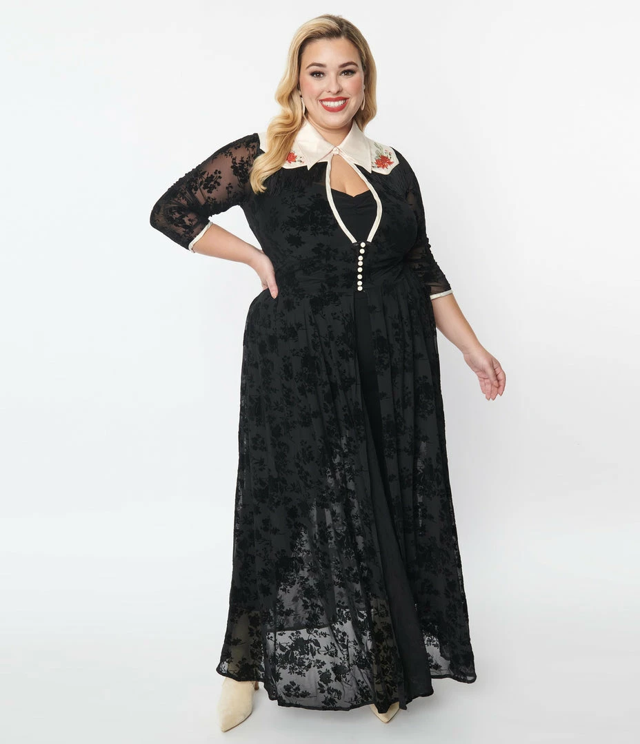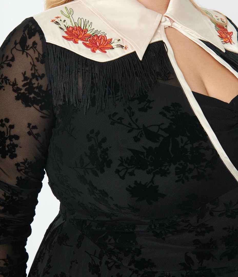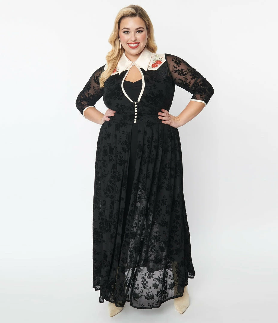 Best Pirce โจ New Arrivals! Unique Vintage Plus Size Black Floral Mesh Western Duster ๐