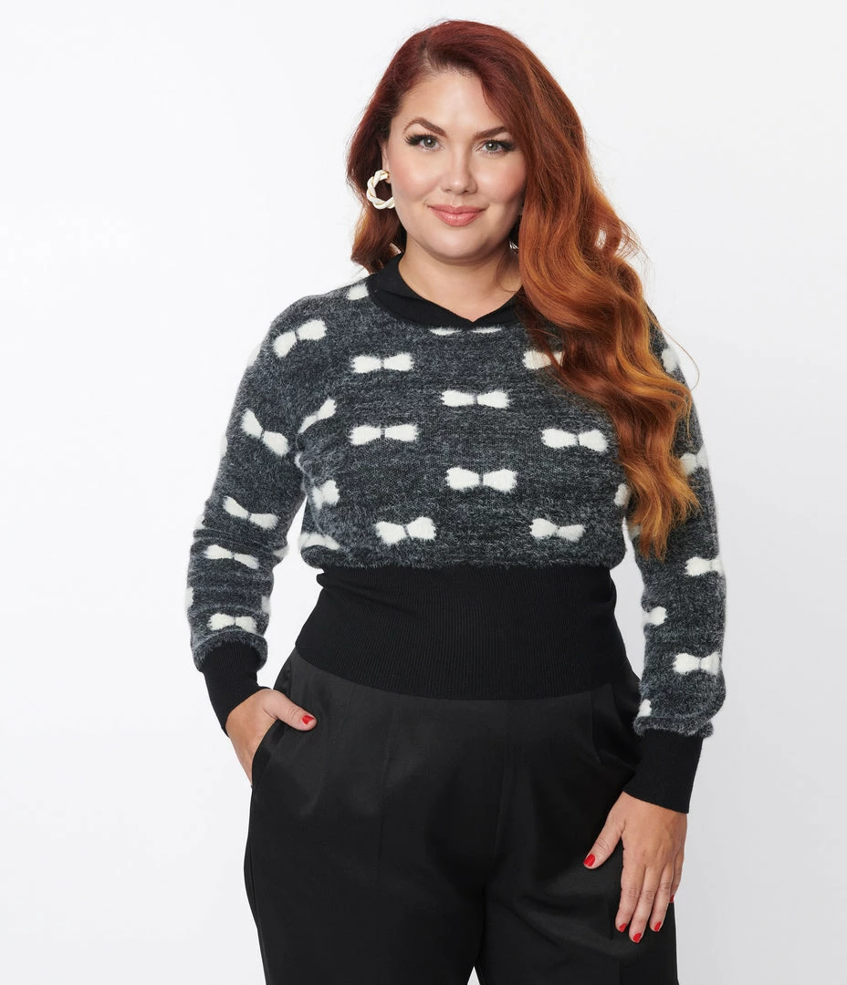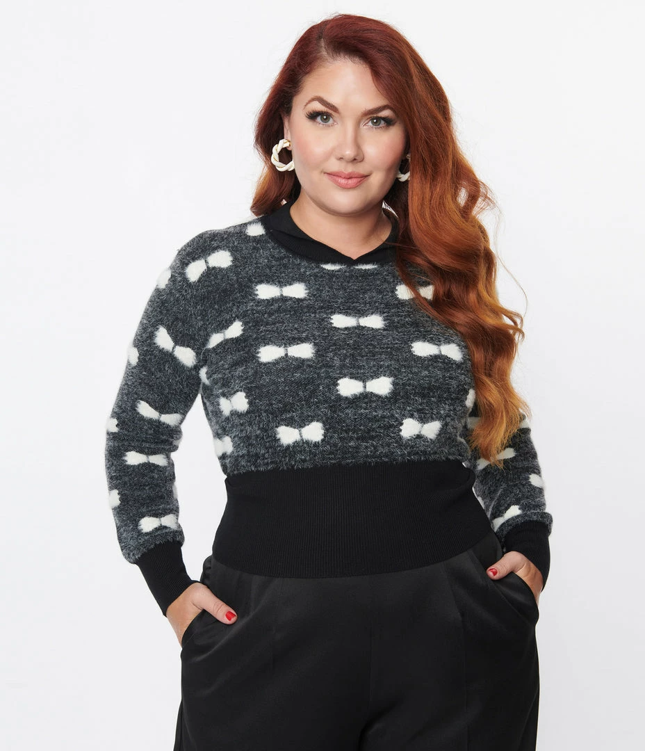 Best reviews of ๐ New Arrivals! Unique Vintage Plus Size Black & Ivory Bow Fuzzy Sweater ๐คฉ