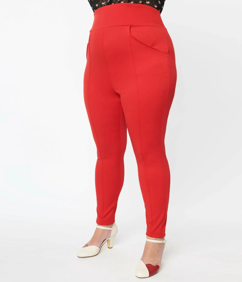 Deals 😍 New Arrivals! Unique Vintage Plus Size Red Pintuck High Waist Pants 😍