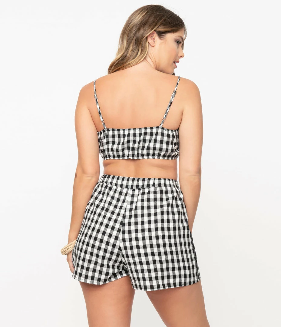 Best Sale 🛒 No Less Than Black & White Gingham High Waist Shorts ⭐