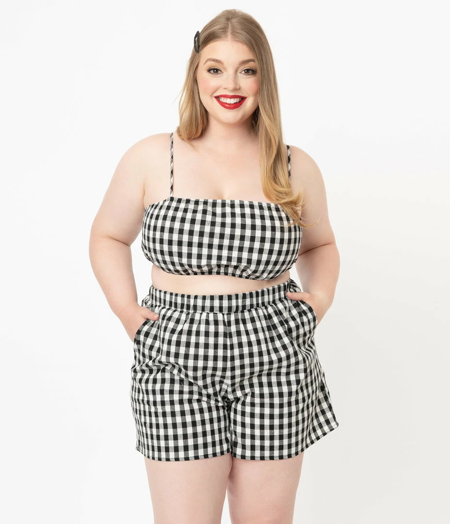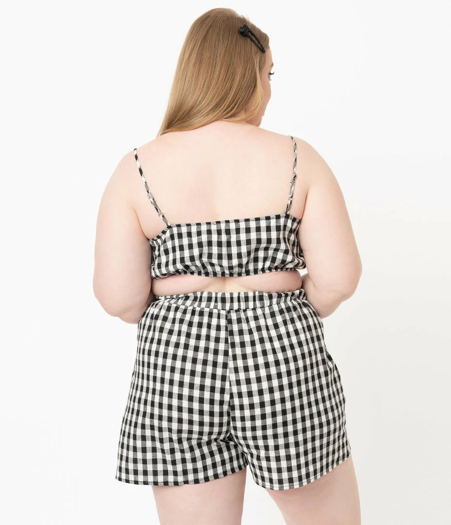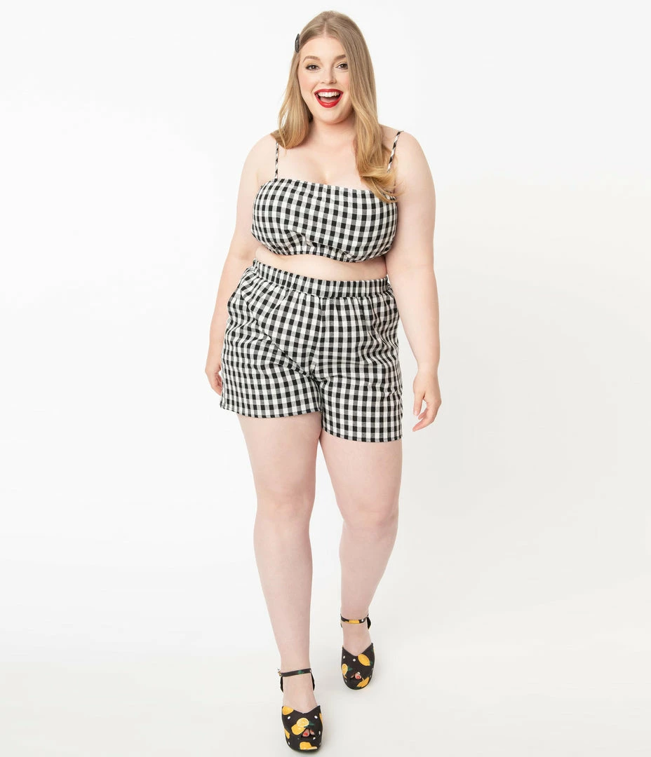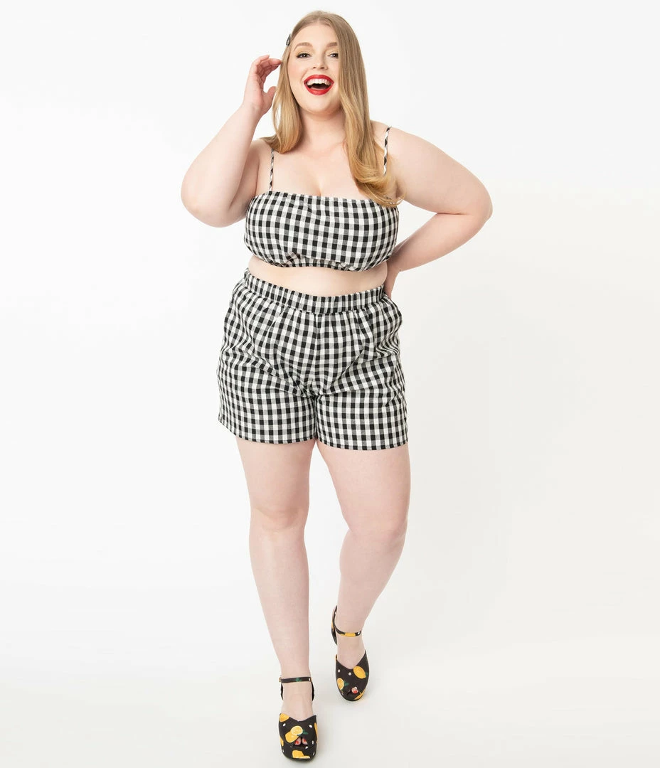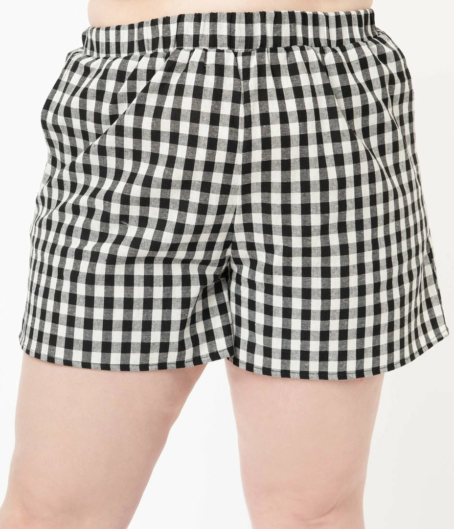 Coupon 🔥 No Less Than Plus Size Black & White Gingham High Waist Shorts Sale 👍