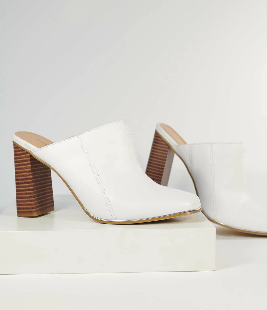 Coupon ๐ OUR LOVE LETTER INC ๐ Heels & Wedges White Leatherette Mule ๐ Heels ๐