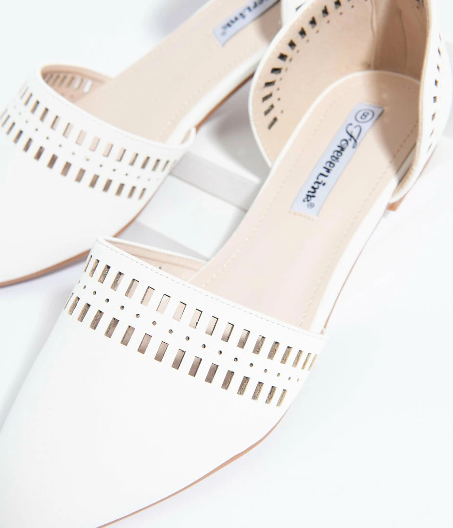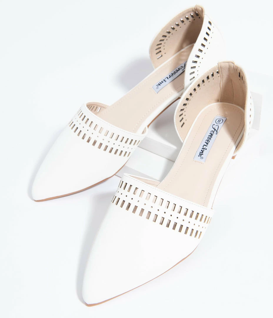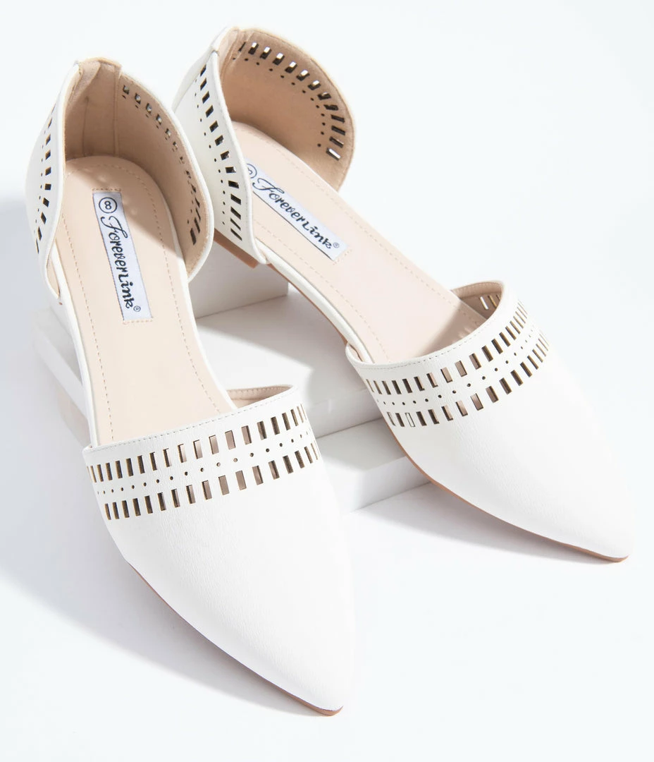 Best deal 🛒 OUR LOVE LETTER INC White Cutout Leatherette Pointed Toe Flats 👍