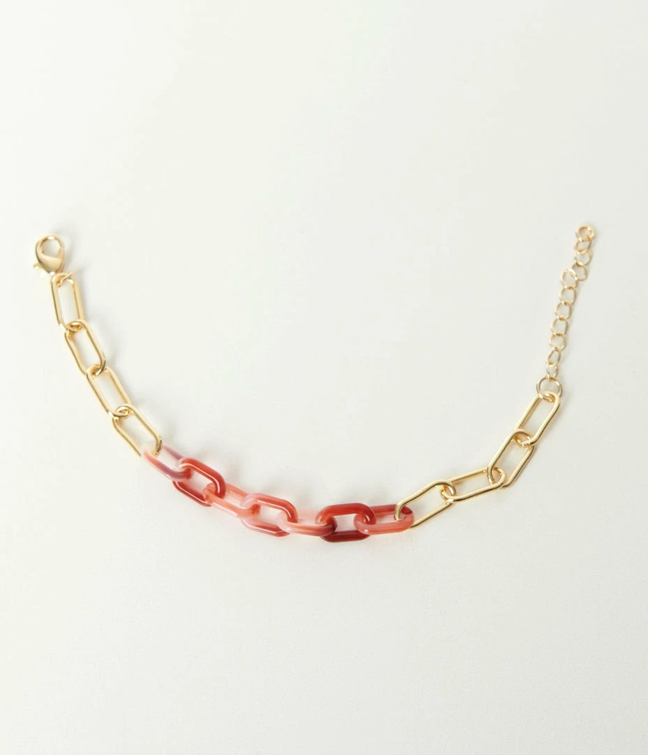 This red and golden bracelet is the perfect dainty wrist accessory in a fabulous chain design. Secured with an adjustable lobster clasp for a flexible fit!
