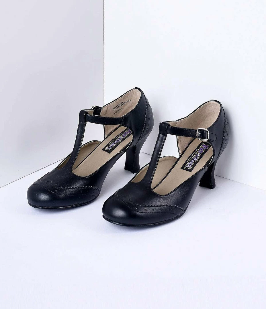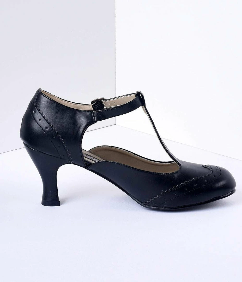 Combining the charming look of classic Mary Janes with the subtly sexy nature of kitten heels, these black Mary Jane kitten T-strap heels from Unique Vintage are the perfect footwear for your fun formal occasions. These vintage Mary Jane shoes feature low, 3-inch kitten heels that give you a bit of a boost without the discomfort of stilettos or pumps, while their perforated details and stitched panels offer the beloved Mary Jane look. The T-strap on top secures these ladylike heeled Mary Janes against your feet while also adding even more vintage style. Wear them with a favorite little black dress for any special occasion or slip them on to complete a retro-inspired Halloween costume.