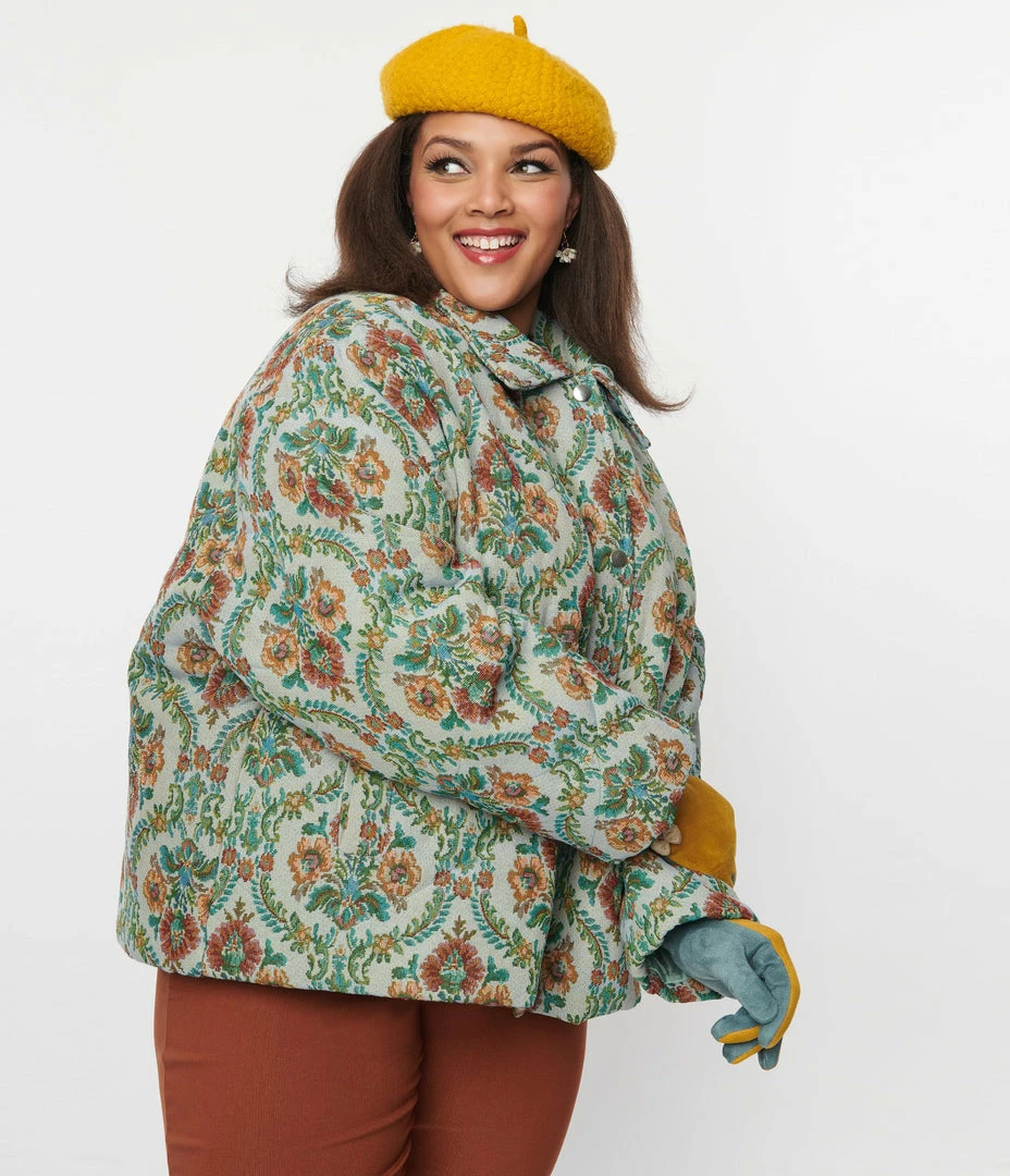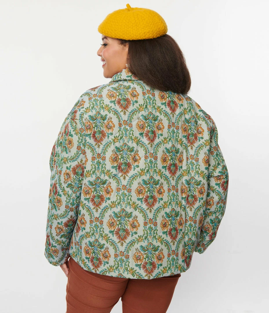 Best Pirce ๐ Polagram (Well Made) Clothing Plus Size Vintage Green Floral Tapestry Jacquard Jacket ๐