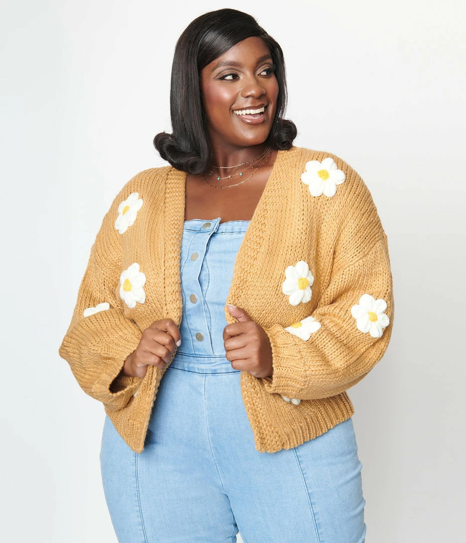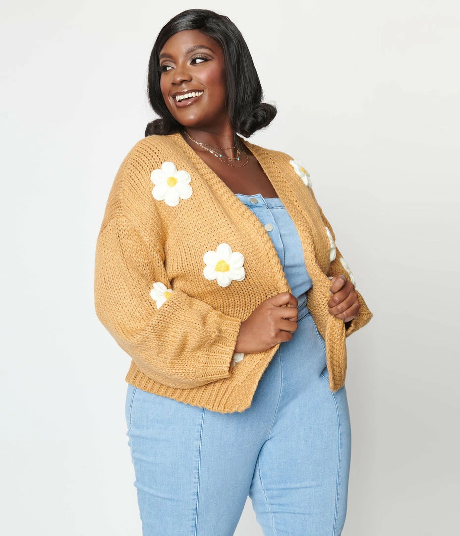 Budget ๐ Polagram (Well Made) Plus Size Brown 3D Daisy Cardigan Trending โค๏ธ