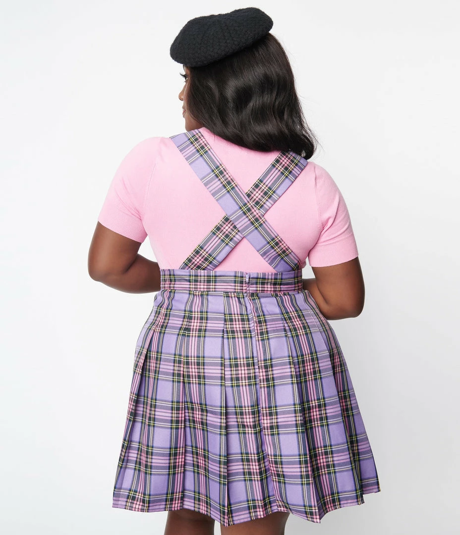 Cheap 🎉 Unique Vintage Plus Size Black & Ivory Plaid Skinny Leg Bexley Jumpsuit New Arrivals! 💯